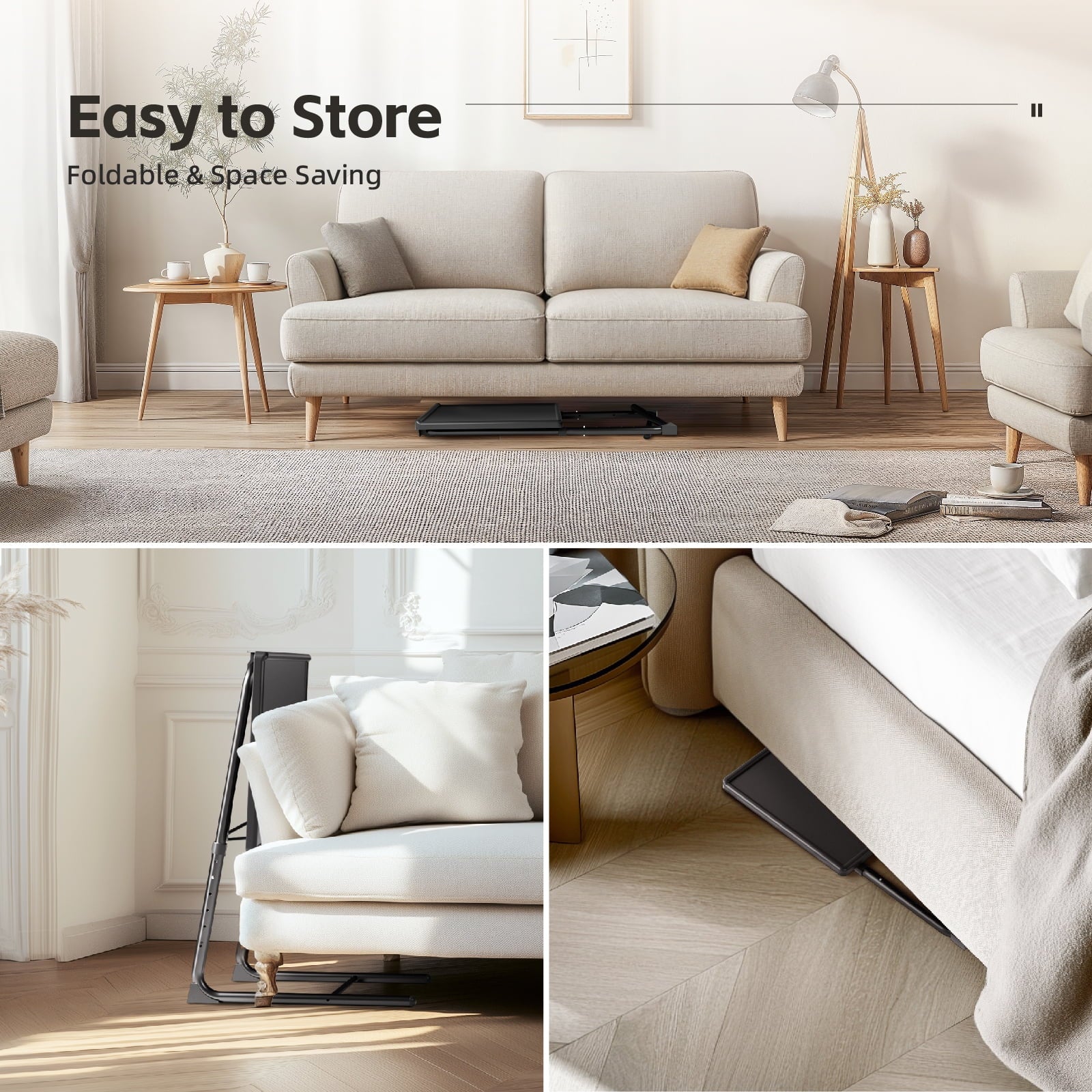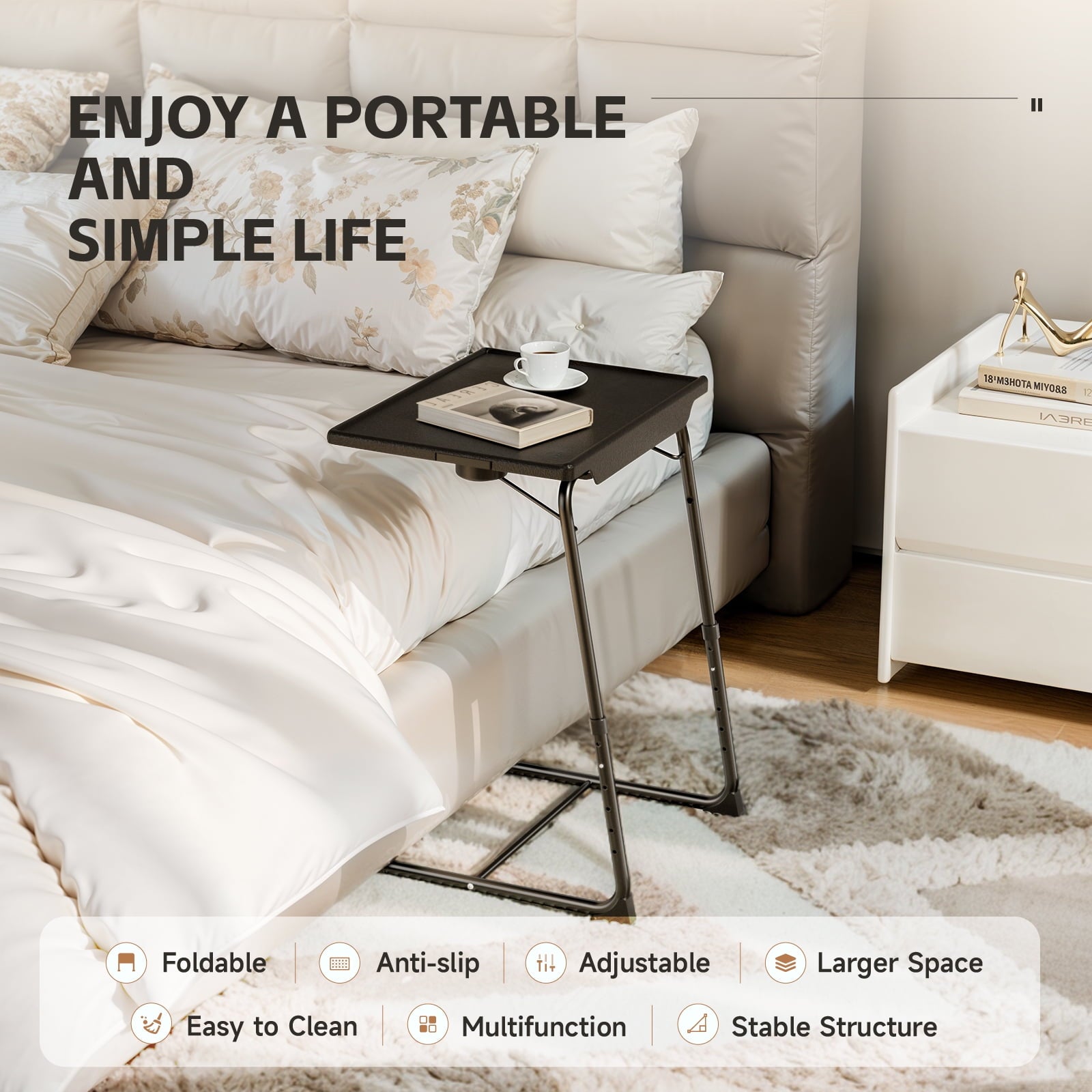 Folding TV Table Tray offers a quick and stylish side table wherever extra table space is needed, while thoughtfully designed to effortlessly fold away conveniently when not in use. It easily folds flat and can be stored on an ultra-handy storage tray conveniently when not in use. Constructed from Metal Plastic and boast a classic natural finish sure to complement any decor scheme and color story. This TV Table Tray can have 6 heights and 3 tilt angles that can be adjusted.This table not only provides ample room to keep things within reach but also works perfectly as a quick pop-up table to serve extra drinks and snacks. It is also the perfect addition to dorm rooms or smaller living spaces. Use this Tray Table to instantly create a desk, small kitchen table and work surface, meals by the television. Its sleek design can also fit in with many styles of decor, a perfect choice for every home.