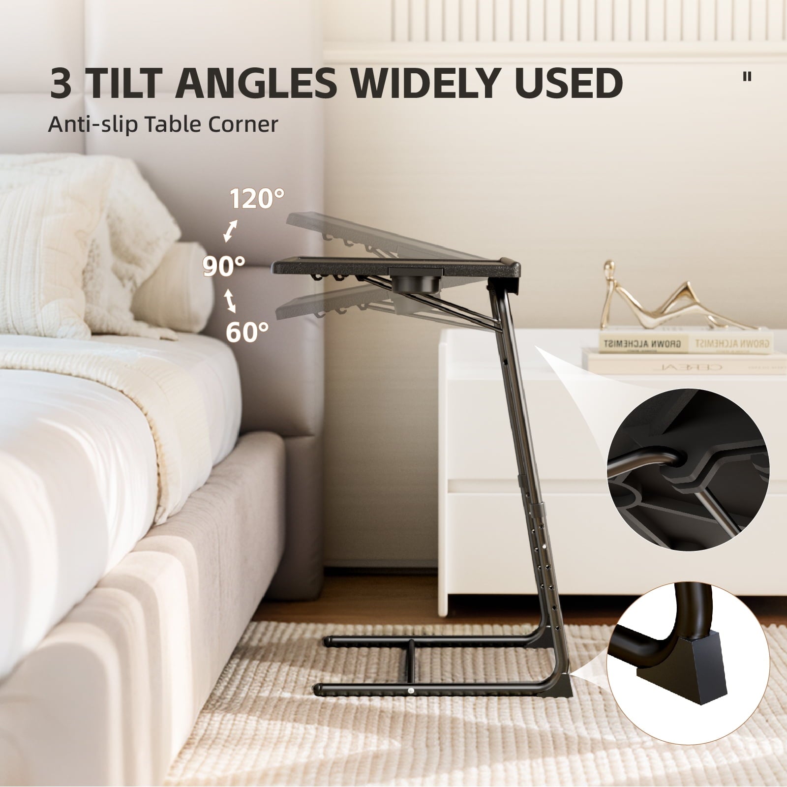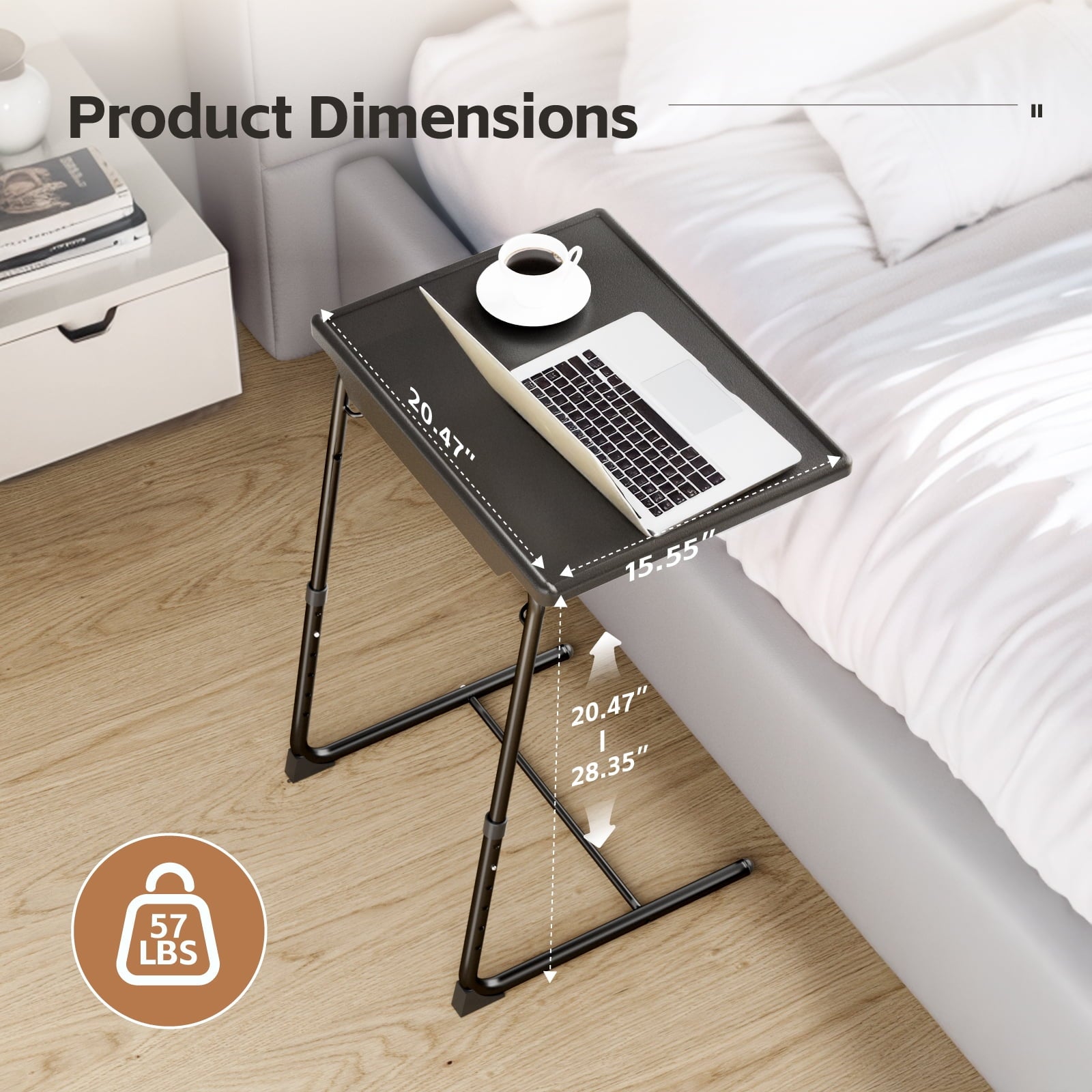 2 Pack Portable Foldable 6 Height & 3 Tilt Angles Adjustable TV Tray Table TV Dinner Tray Sofa Desk for Home Office,Black