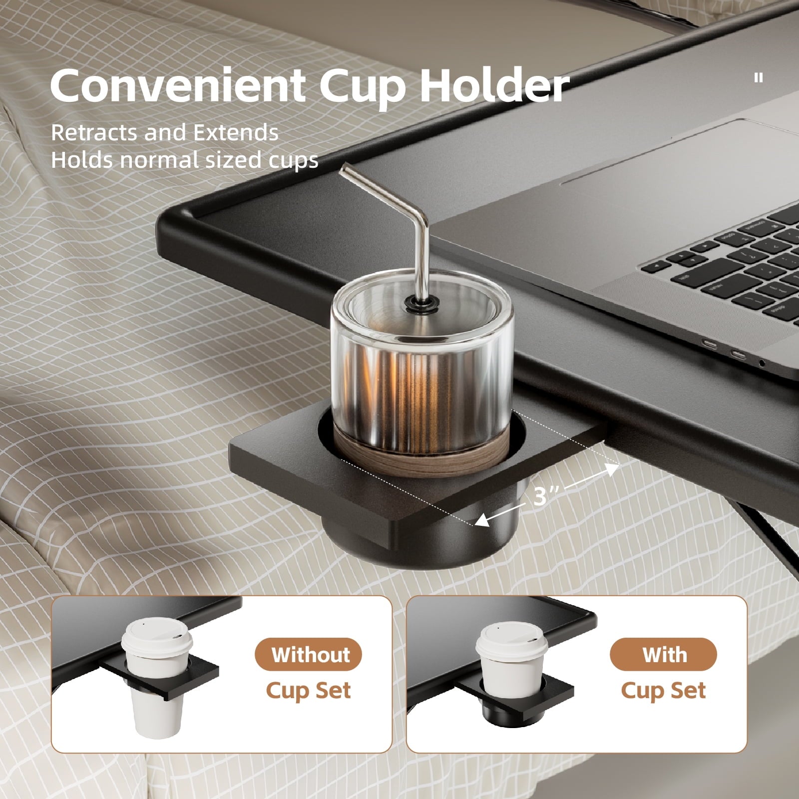 - Height & angles adjustable - Our TV tray’s height can be fully adjusted from 19" to 27" and can be adjusted horizontally 1 angle downwards and 1 angle upwards .