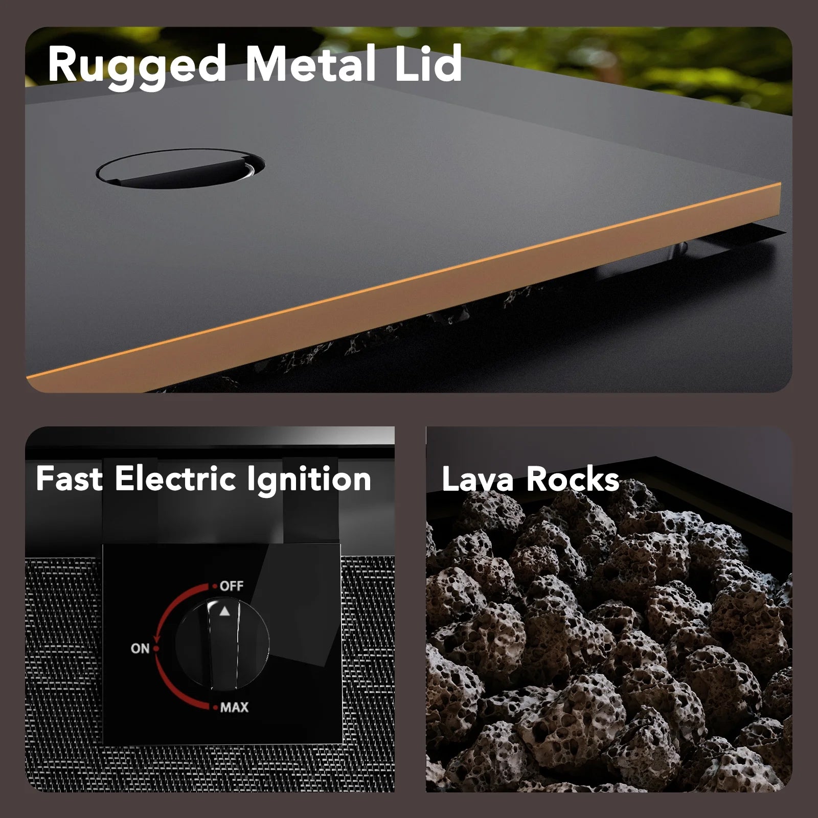 - 【Ultra-Safe Design】Enjoy warmth with peace of mind. Our fire pit table features a triple-layer heat insulation system that creates a critical barrier between the flame zone and gas components, preventing overheating and potential hazards. The hidden propane tank compartment eliminates tripping hazards and saves space. Ideal for homes with kids or pets.