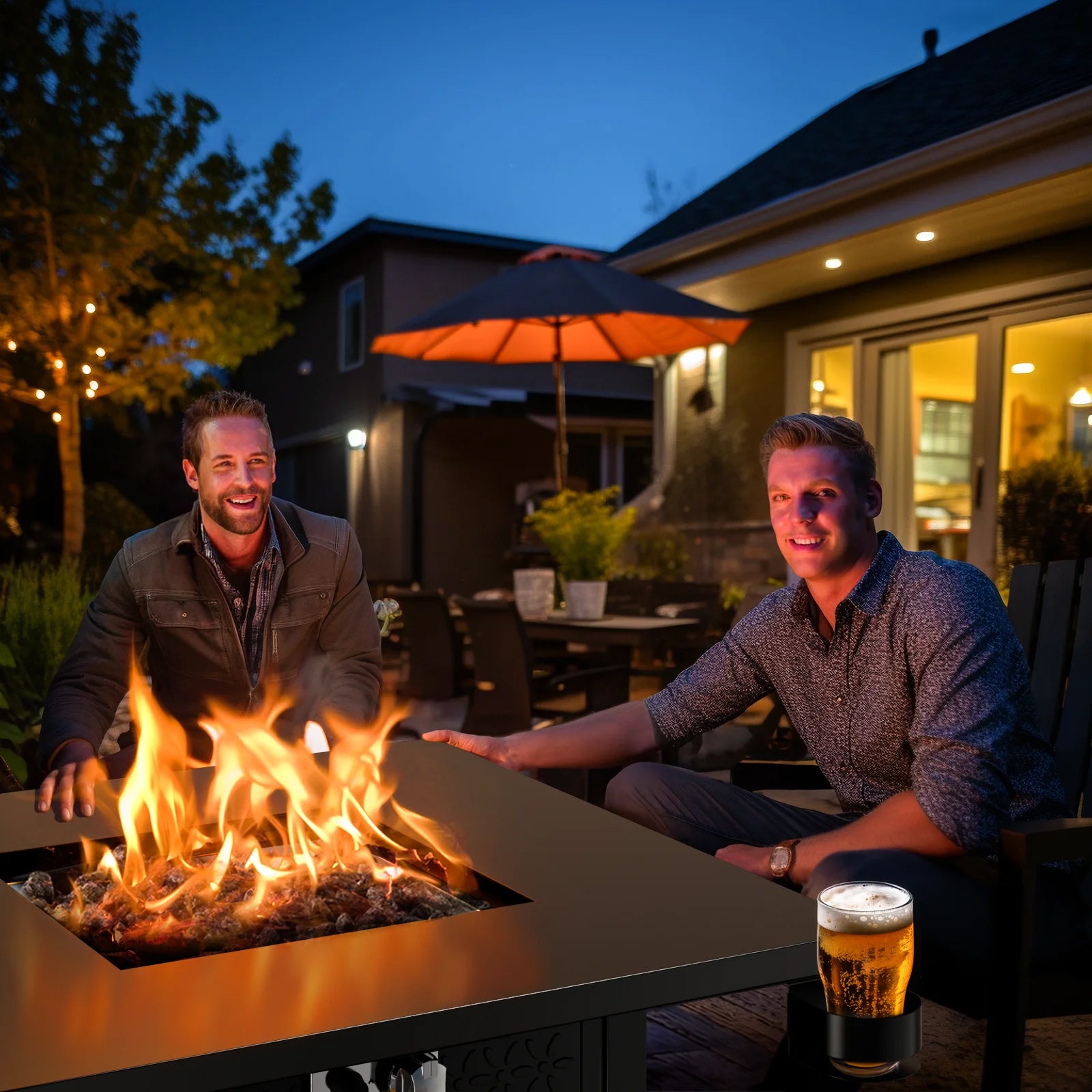 - More than just warmth, our 28" square fire table offers ample space for drinks, food, and treats. Let your guests relax, mingle, and enjoy without juggling their drinks all evening