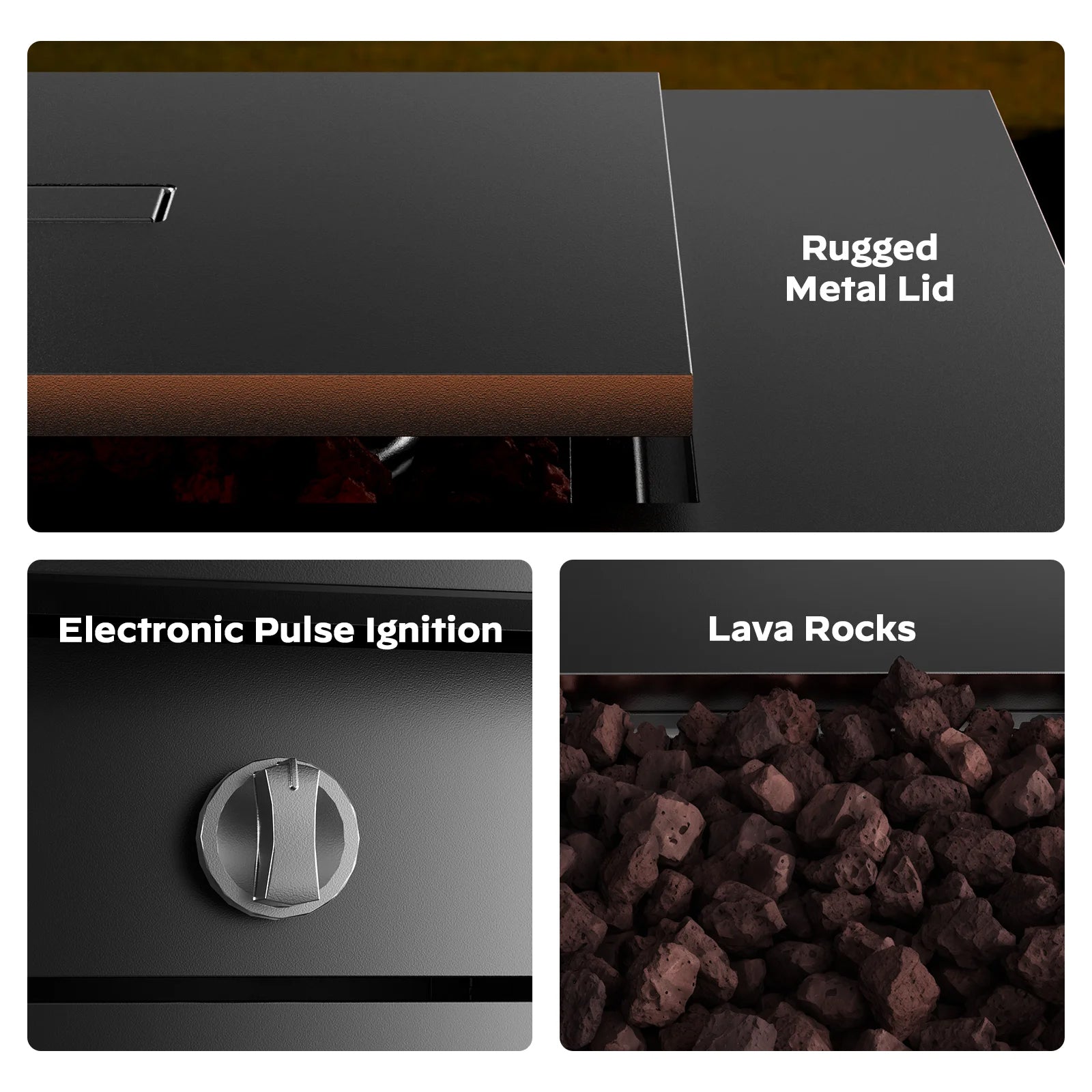 - 【2-in-1 Fire Pit Table】Transform your outdoor space in seconds! Our versatile fire pit table features a press-seal lid that converts it into a sleek, flat-surface dining table, bar table, coffee table when not in use. No bulky covers or awkward transitions—just effortless functionality for day-to-night entertaining.