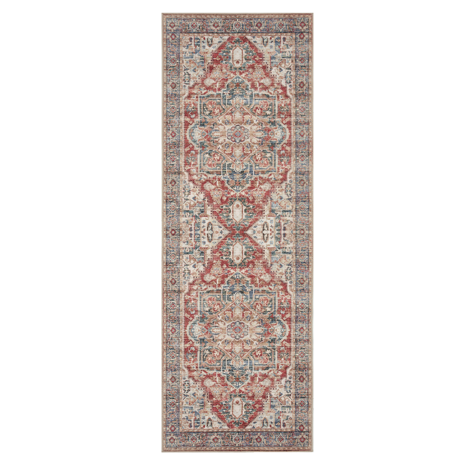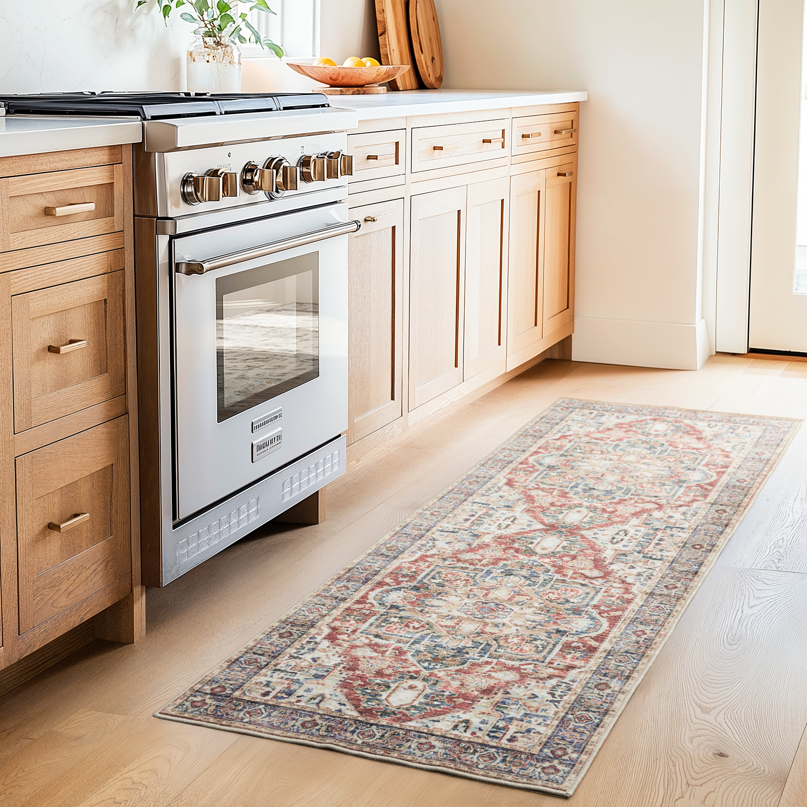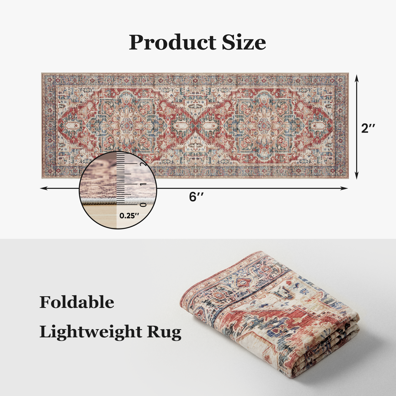 2'x6' Boho Runner Rug for Hallway, Machine Washable Stain Resistant Non-Shed Carpet, Runner Rug with Non-Slip Backing for Kitchen, Entryway, Bedroom, Laundry, Bathroom