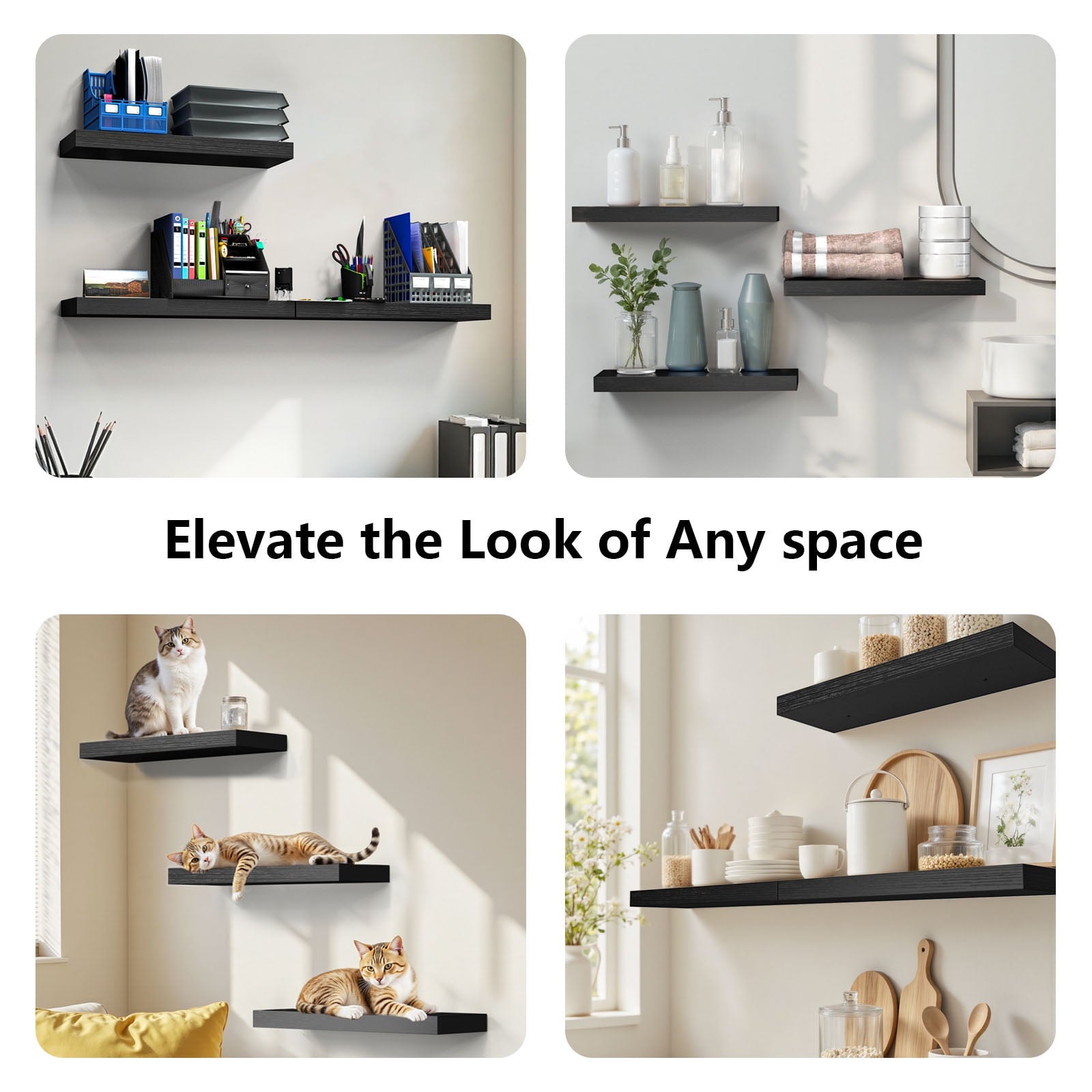 - Multi-Functional for Every Scenario:From the bedroom to the garage, CHITOOMA’s floating shelves adapt to your needs. Use them as bookshelves, photo ledges, plant stands, or even behind a door for extra storage. Their neutral black finish and functional design make them suitable for virtually any scenario. Get organized in style with these incredibly versatile wall shelves!