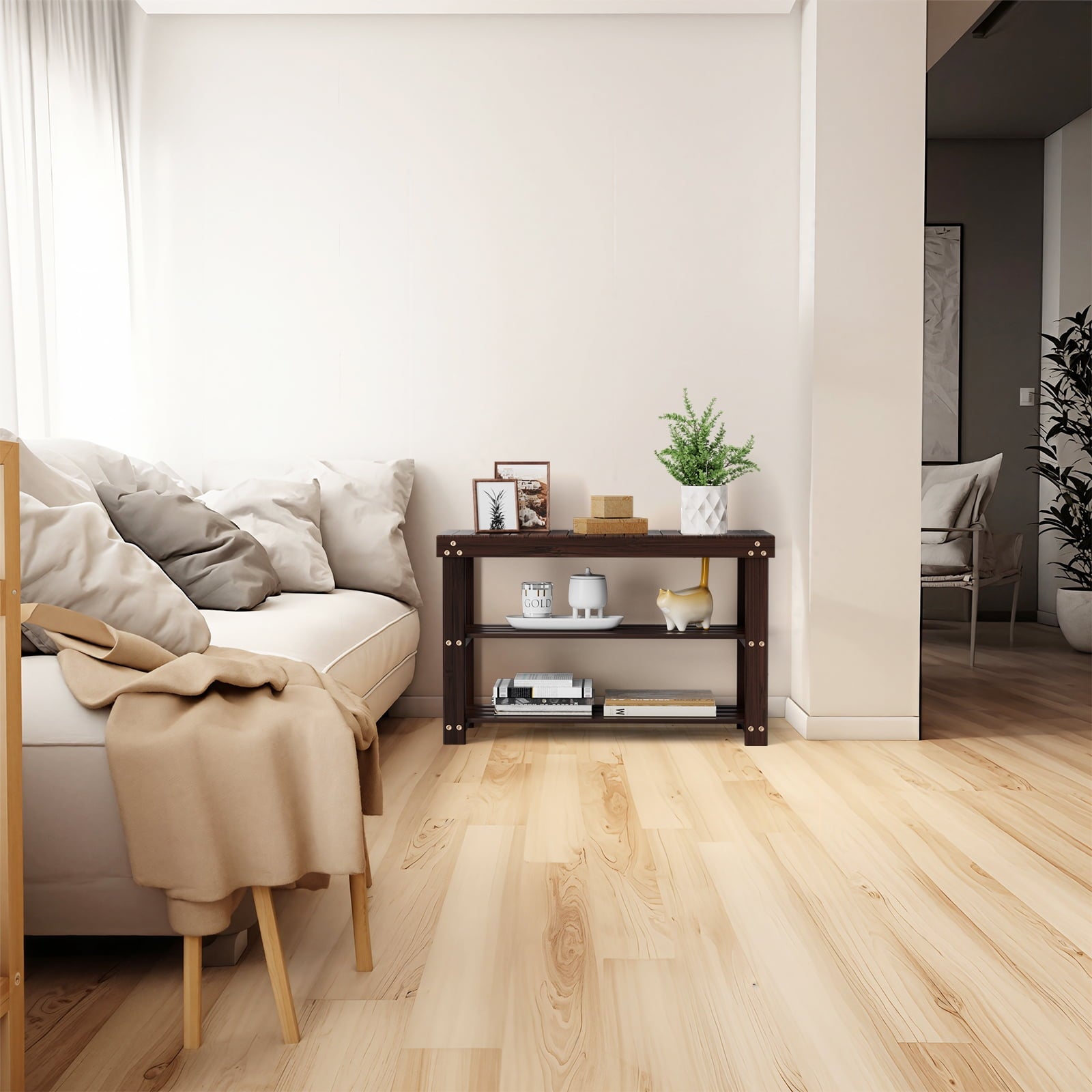 3-Tier Bamboo Shoe Storage Bench for Entryway, Wood Hallway Shoe Rack Shoe Organizer Shelf for Living Room, Bedroom, 11"D x 27.5"W x 17.5"H, Brown