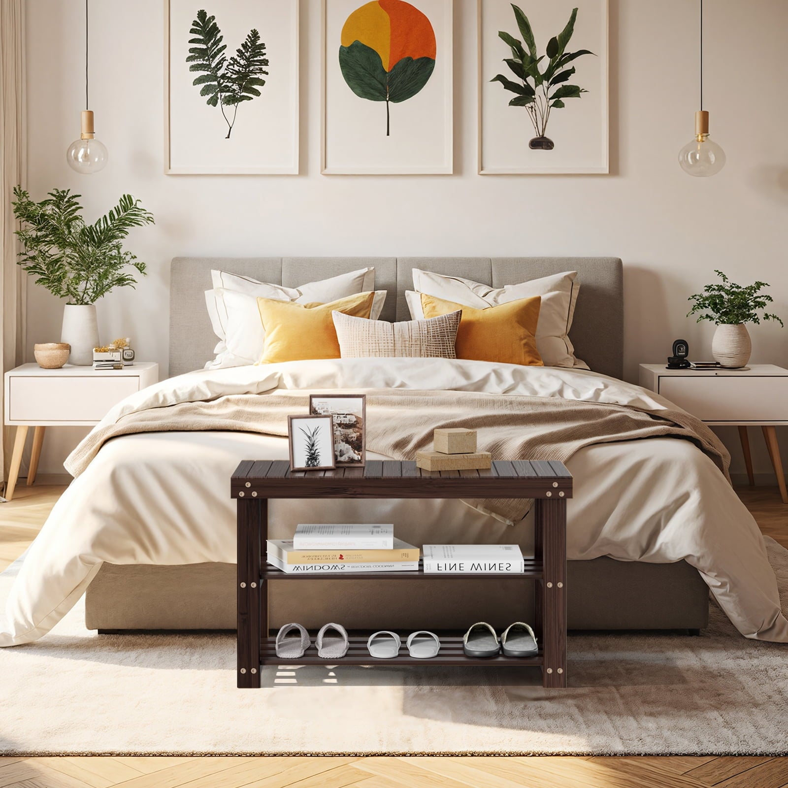 - Sturdy Shoe Rack Bench: With a sleek and simple design, this bamboo shoe rack bench complements any home décor. It features a solid structure with a weight capacity of 220 lbs, ensuring safety and comfort during use.