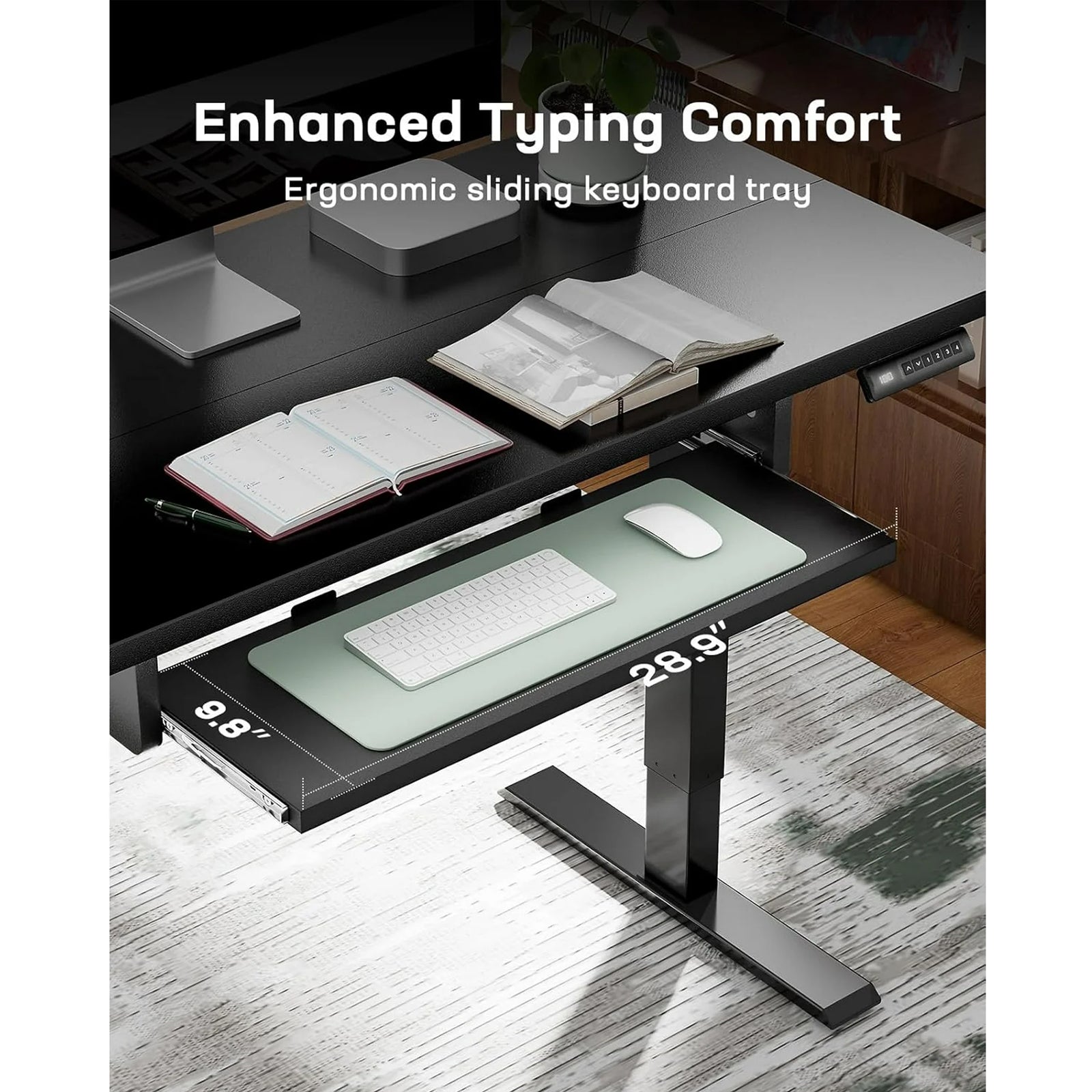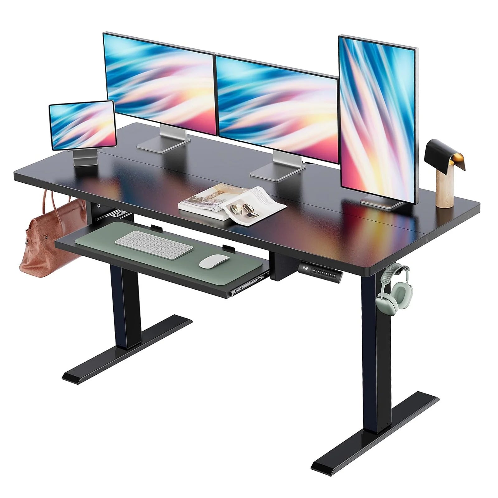 55" x 24" Electric Standing Desk with Keyboard Tray, Height Adjustable Sit Stand up Desk with Headphone Hook & 4 Height Memory Pre-Set for Home Office, Black