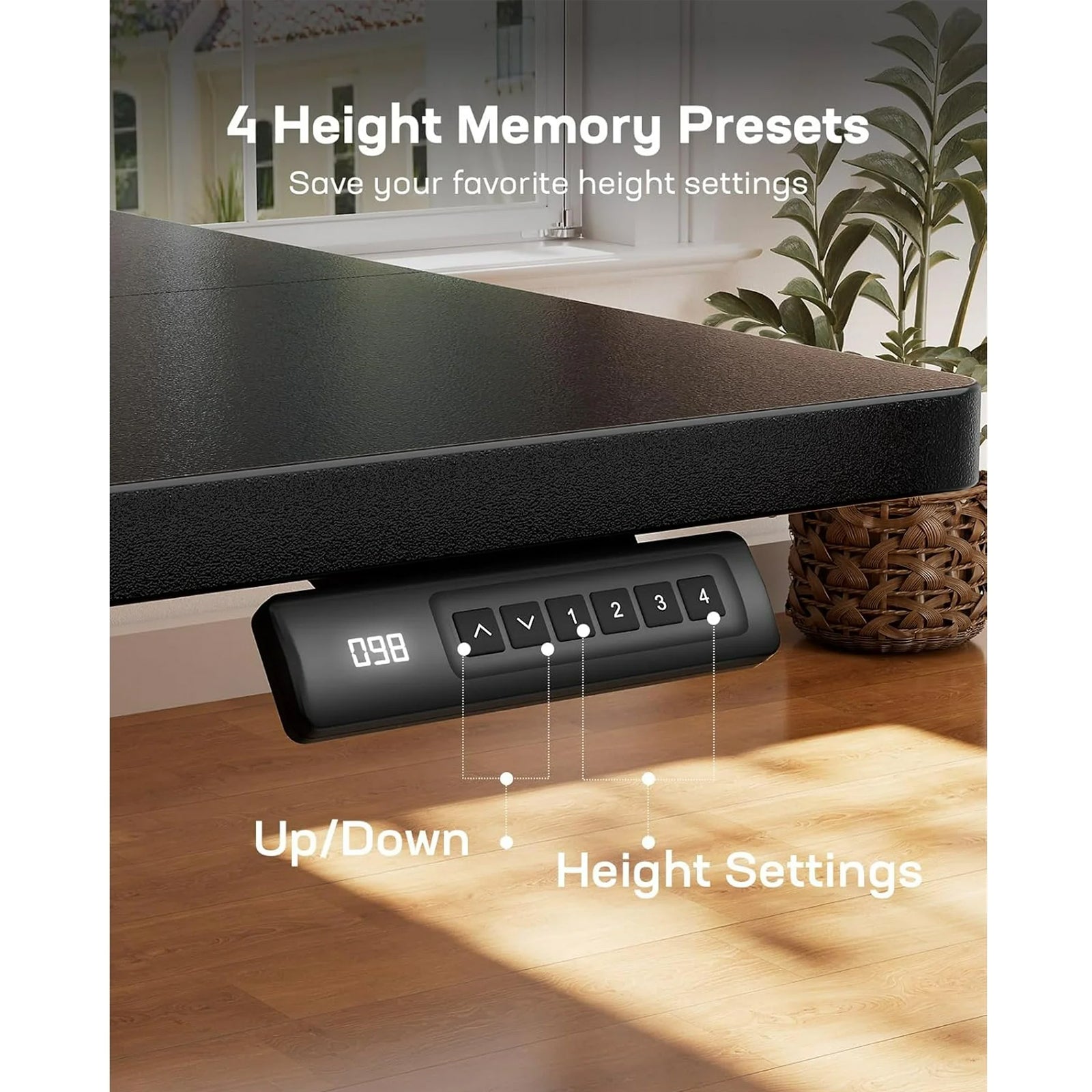 - Effortlessly switch between sitting and standing with smooth height adjustment from 28.35″ to 46.5″, powered by a high-performance motor. The desk features 4 programmable memory buttons, allowing you to save your preferred heights for different tasks or users—perfect for maintaining comfort, enhancing productivity, and promoting better posture throughout the day.