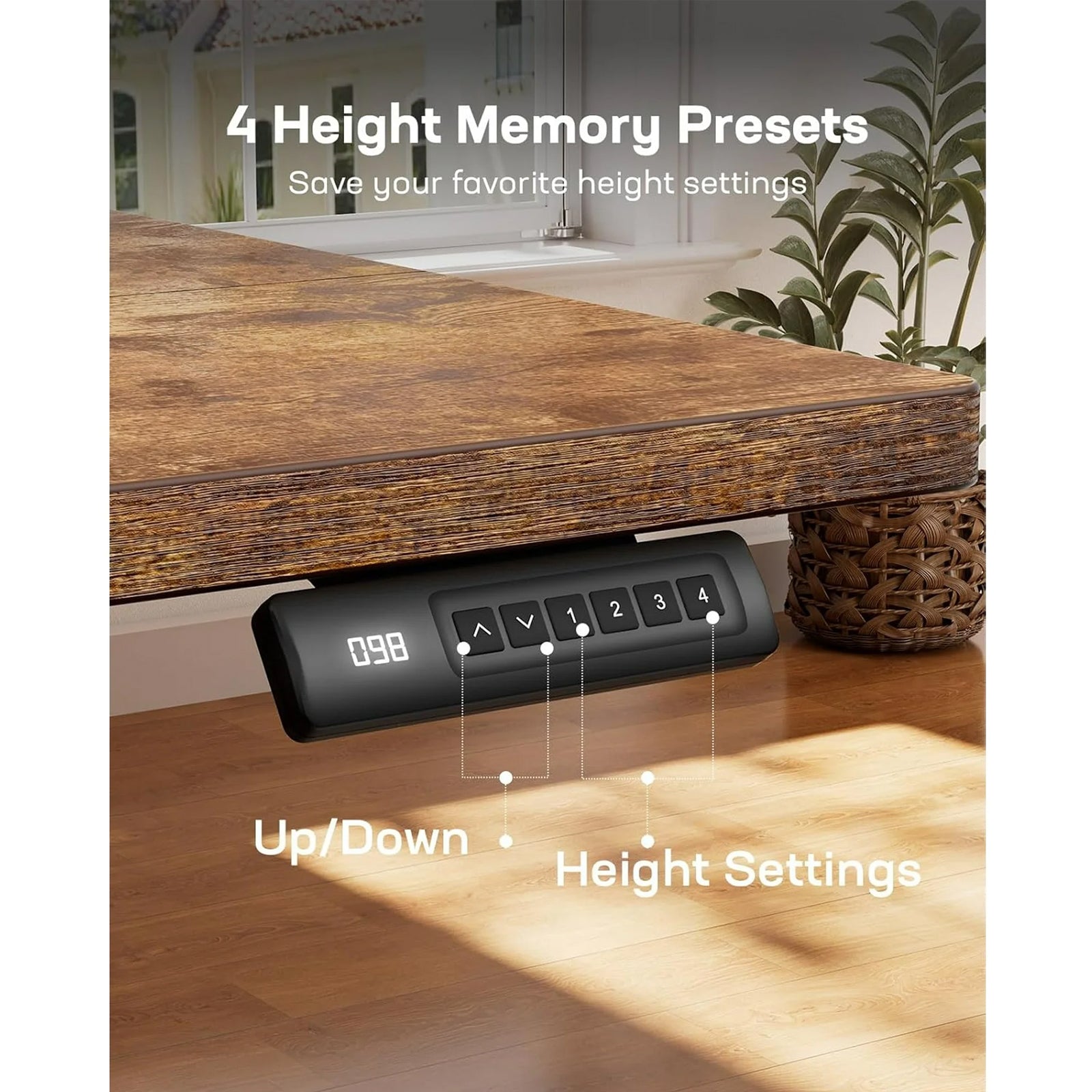 - Effortlessly switch between sitting and standing with smooth height adjustment from 28.35″ to 46.5″, powered by a high-performance motor. The desk features 4 programmable memory buttons, allowing you to save your preferred heights for different tasks or users—perfect for maintaining comfort, enhancing productivity, and promoting better posture throughout the day.