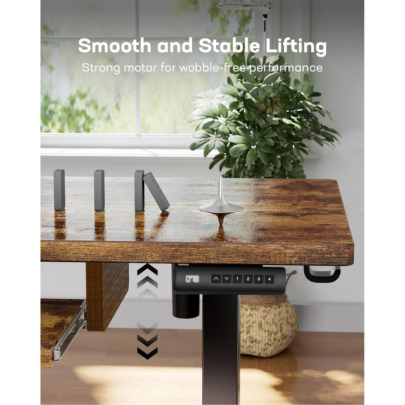 55" x 24" Electric Standing Desk with Keyboard Tray, Height Adjustable Sit Stand up Desk with Headphone Hook & 4 Height Memory Pre-Set for Home Office, Rustic Brown