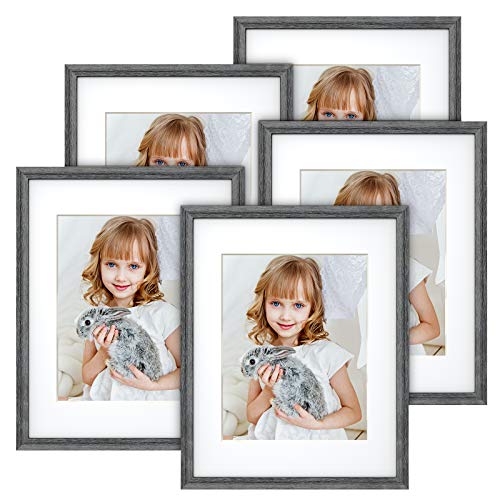 8X10 Picture Frames Set of 5, Display Photos 5X7 with Mat or 8X10 without Mat for Tabletop or Wall Mounting Display, Modern Photo Frame Set of 5, Black MNPF01B1
