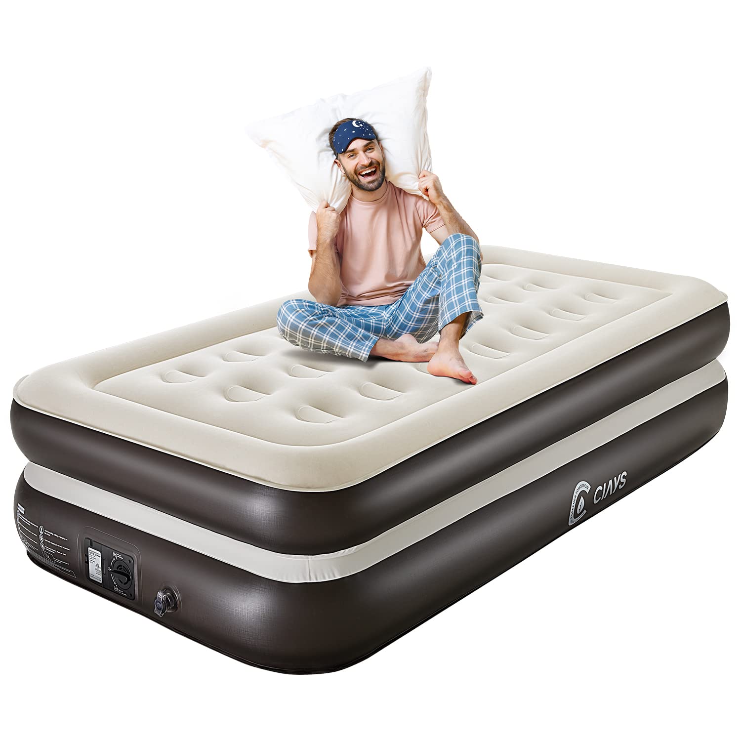 Air Mattress with Built-in Pump, Double High Blow Up Mattress Twin with Carrying Bag, Inflatable Air Bed for Guests, Family, Brown Brown Twin