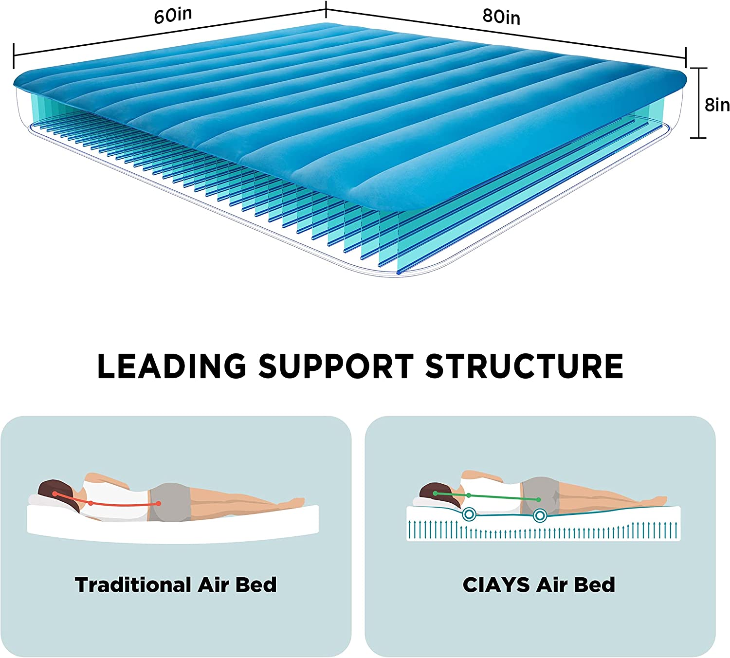 Last-minute Guest Bed - Having guests over for a night? It’s nice to offer them a comfy air bed than a tiny couch or hard pull-out bed. CIAYS luxury air mattresses are made of ultra-thick 0.45mm PVC with flocked tops that minimize puncture and insulate the bed from the cold floor.