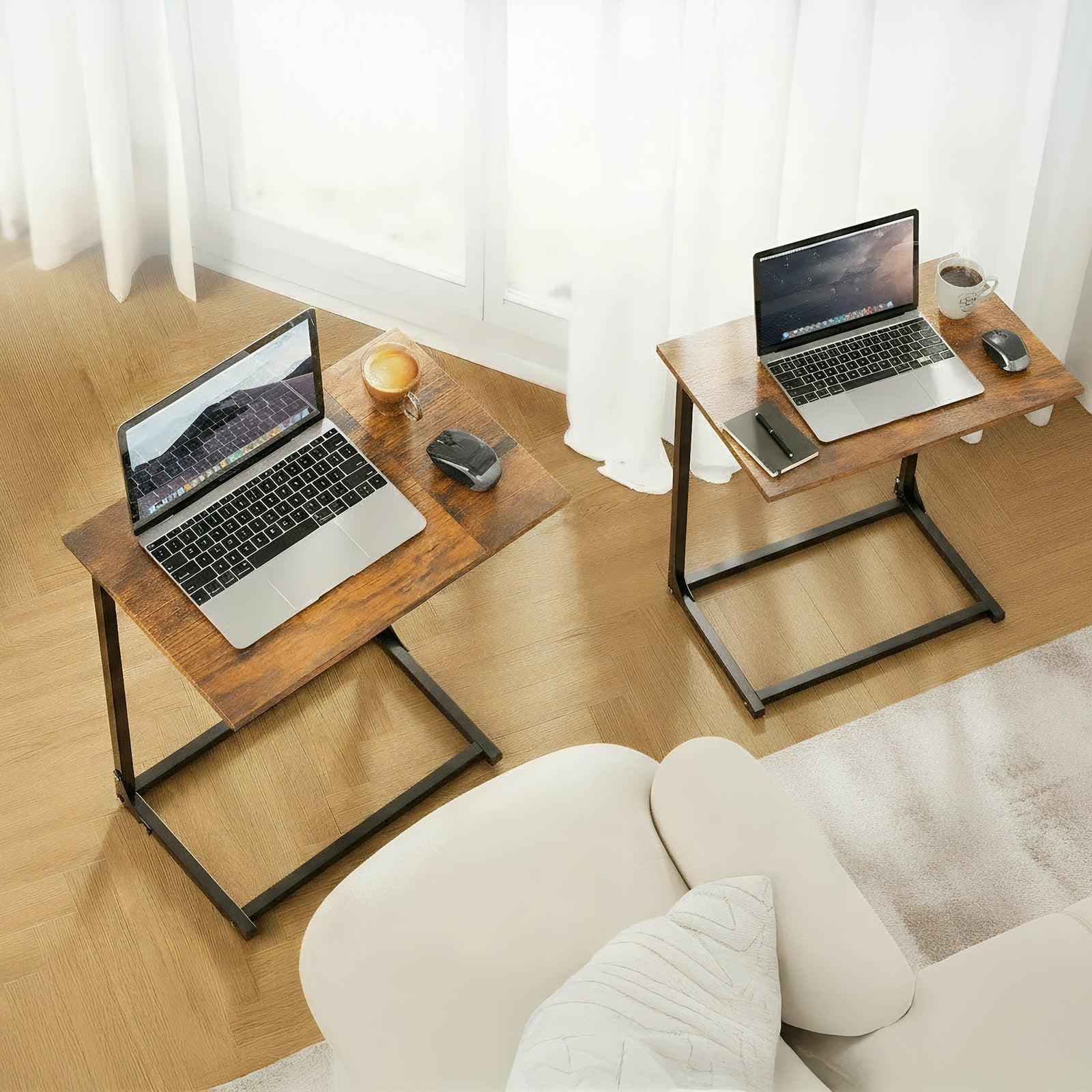 - 【C Shaped Design】Say goodbye to bulky, traditional side tables. Our innovative C-shaped design seamlessly fits around your sofa, bed, or chair, making snacks, coffee, remote control, mobile phone, laptop, and books easier to get.
