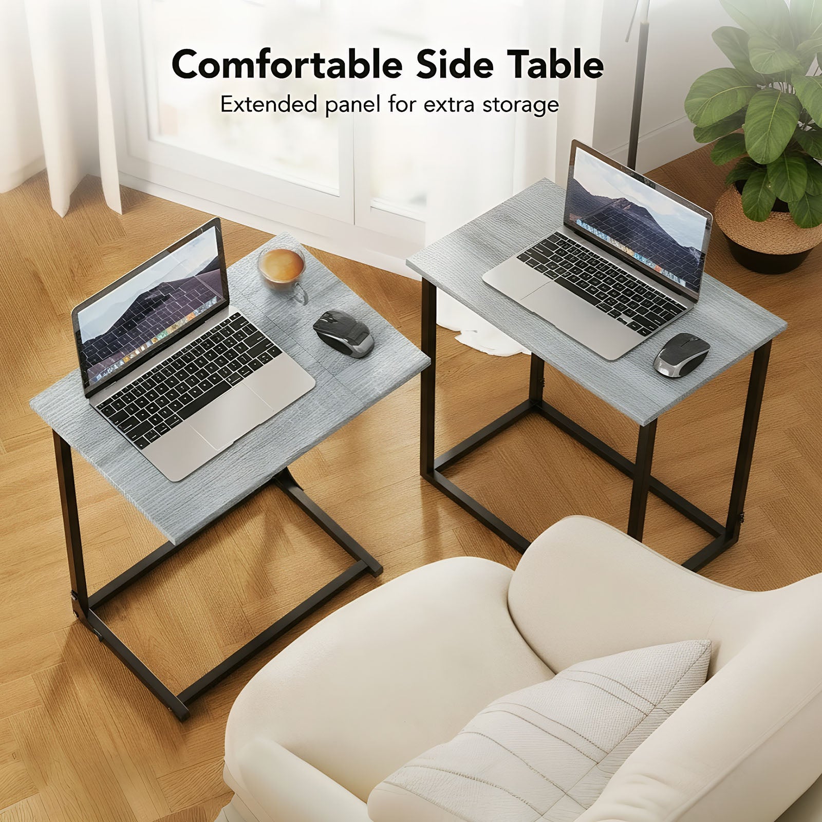 - 【C Shaped Design】Say goodbye to bulky, traditional side tables. Our innovative C-shaped design seamlessly fits around your sofa, bed, or chair, making snacks, coffee, remote control, mobile phone, laptop, and books easier to get.