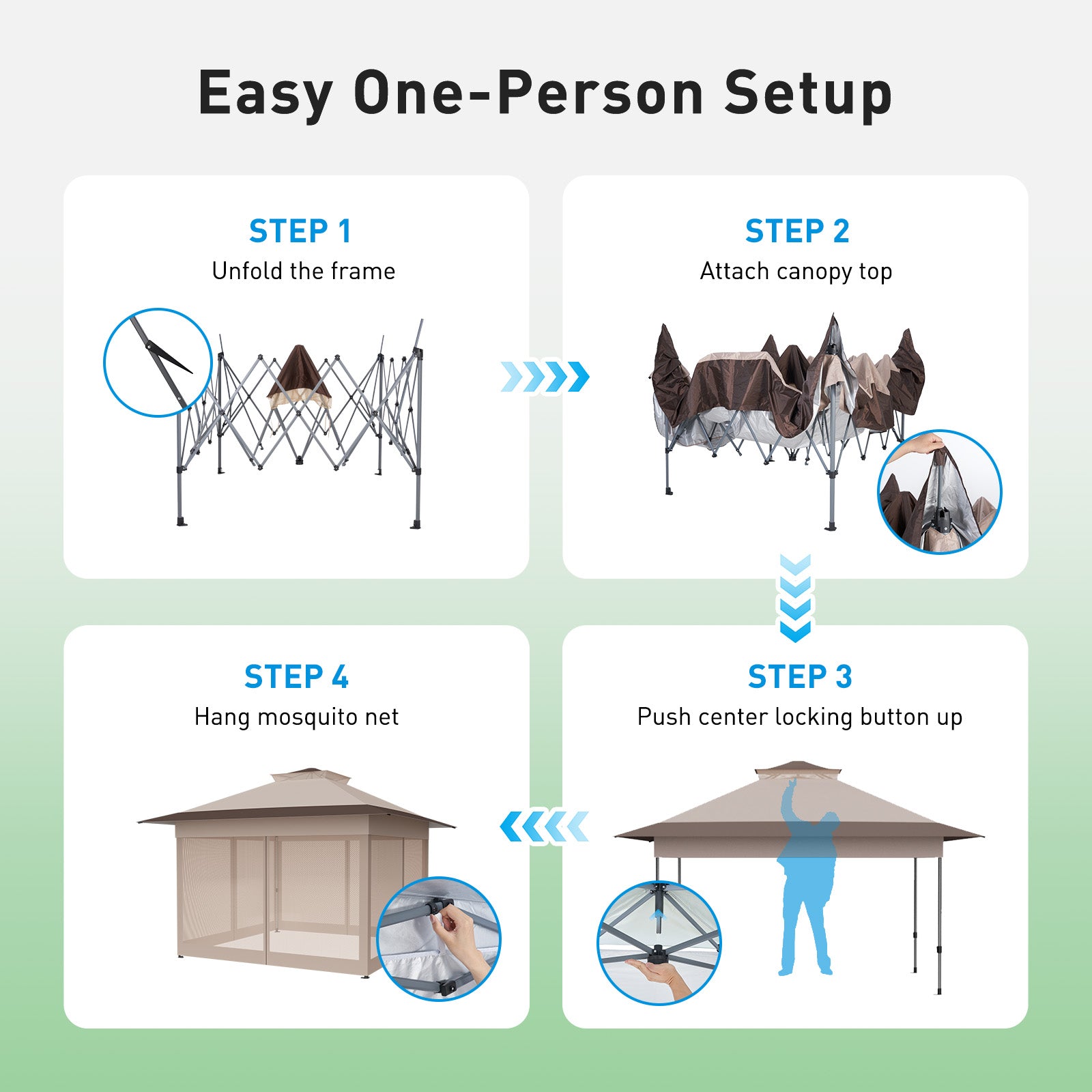 CHITOOMA 13 x 13 ft Outdoor Pop-up Gazebo, Patio Canopy Tent with Mosquito Nettings Vented Top and 169 Square ft of Shade for Garden, Party, Backyard
