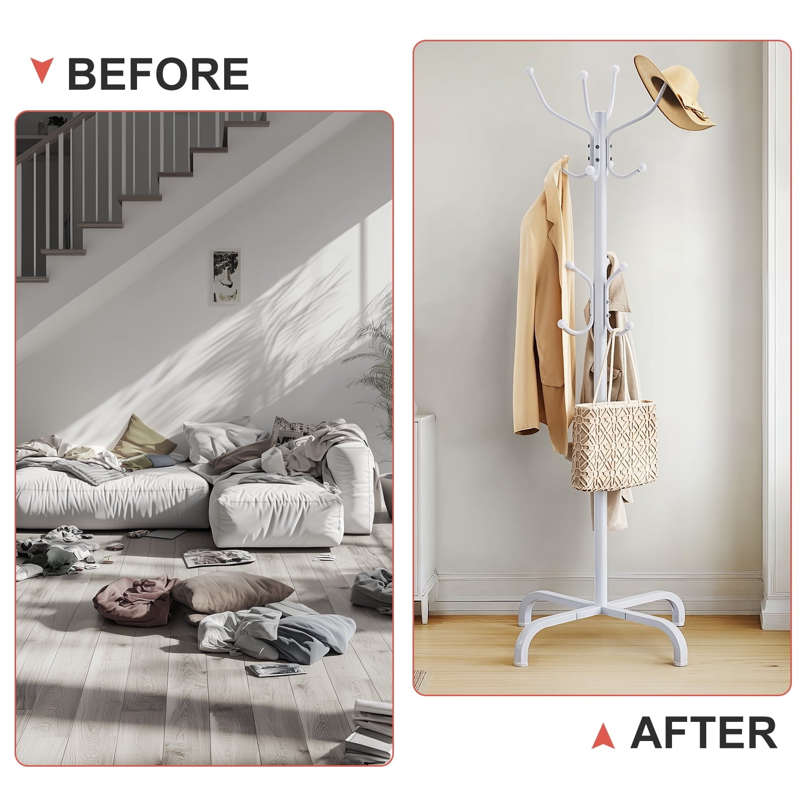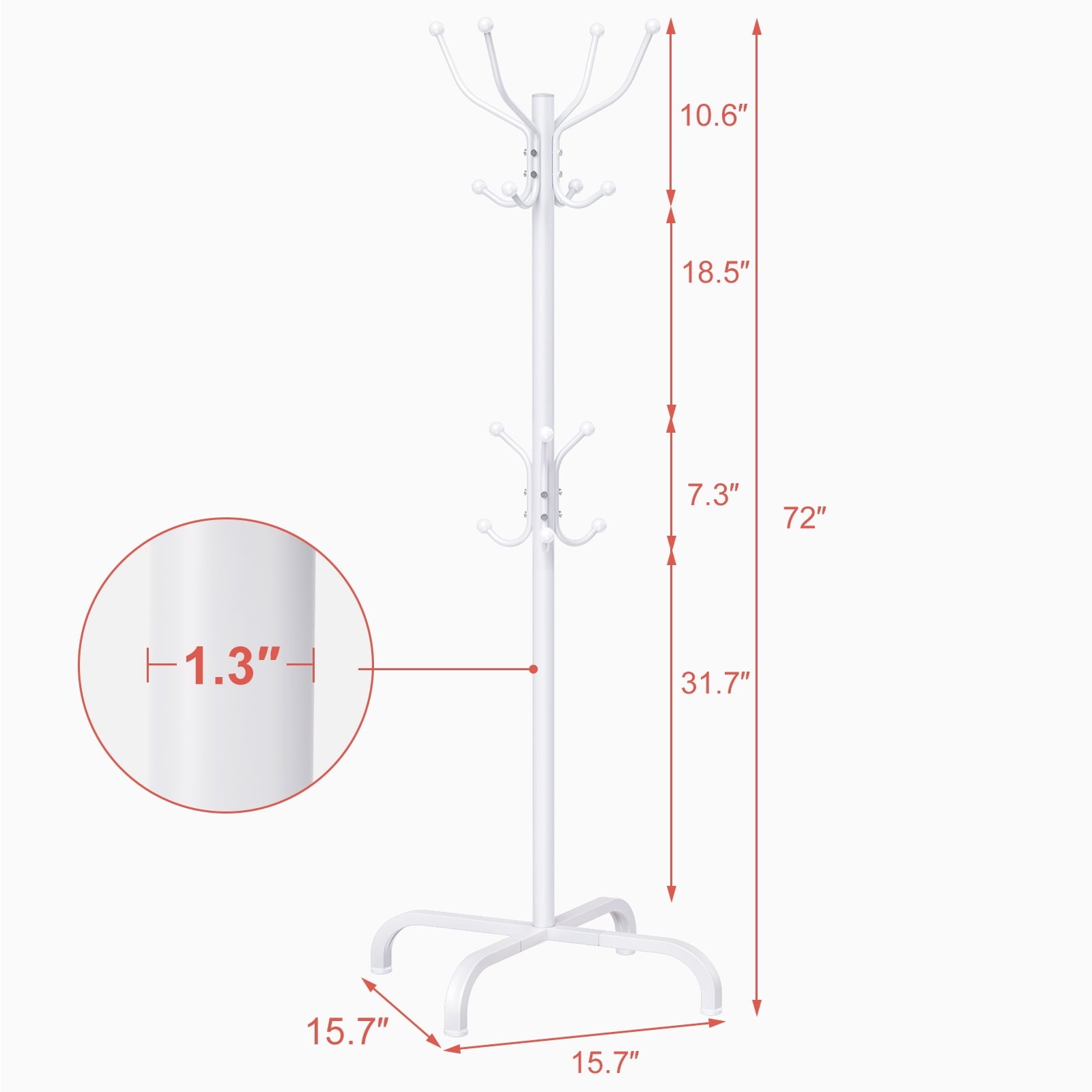 CHITOOMA 14 Hooks Coat Rack Stand Metal Storage Rack Freestanding Hat Clothing Display Stand, White