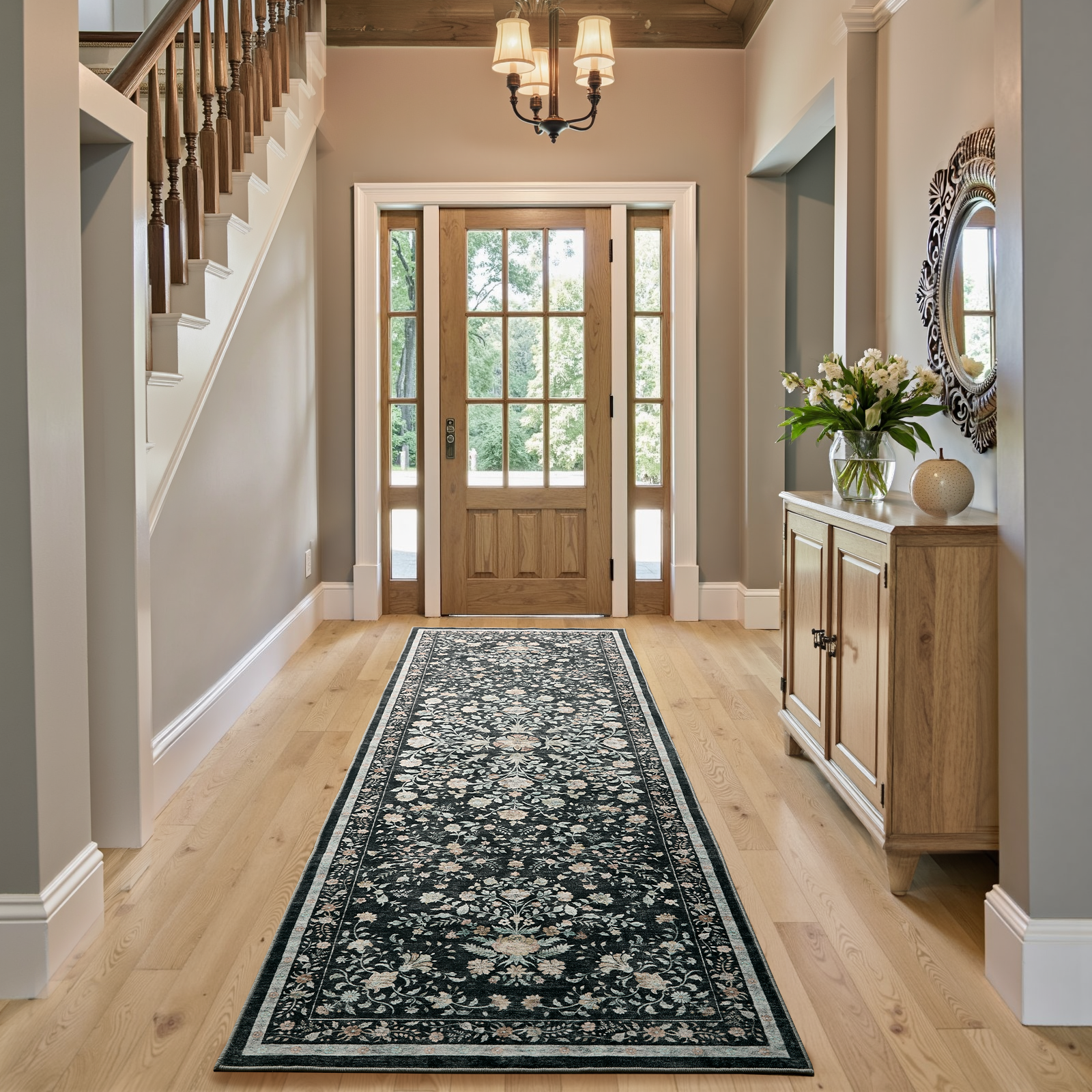 【Easy Care】With its machine-washable feature, this floral runner rug is incredibly easy to clean and maintain. Simply toss it in the washer, and it’ll look as good as new—every time. For daily care, a swift sweep or wipe suffices. Perfect for busy households, pet owners, or anyone who values convenience.