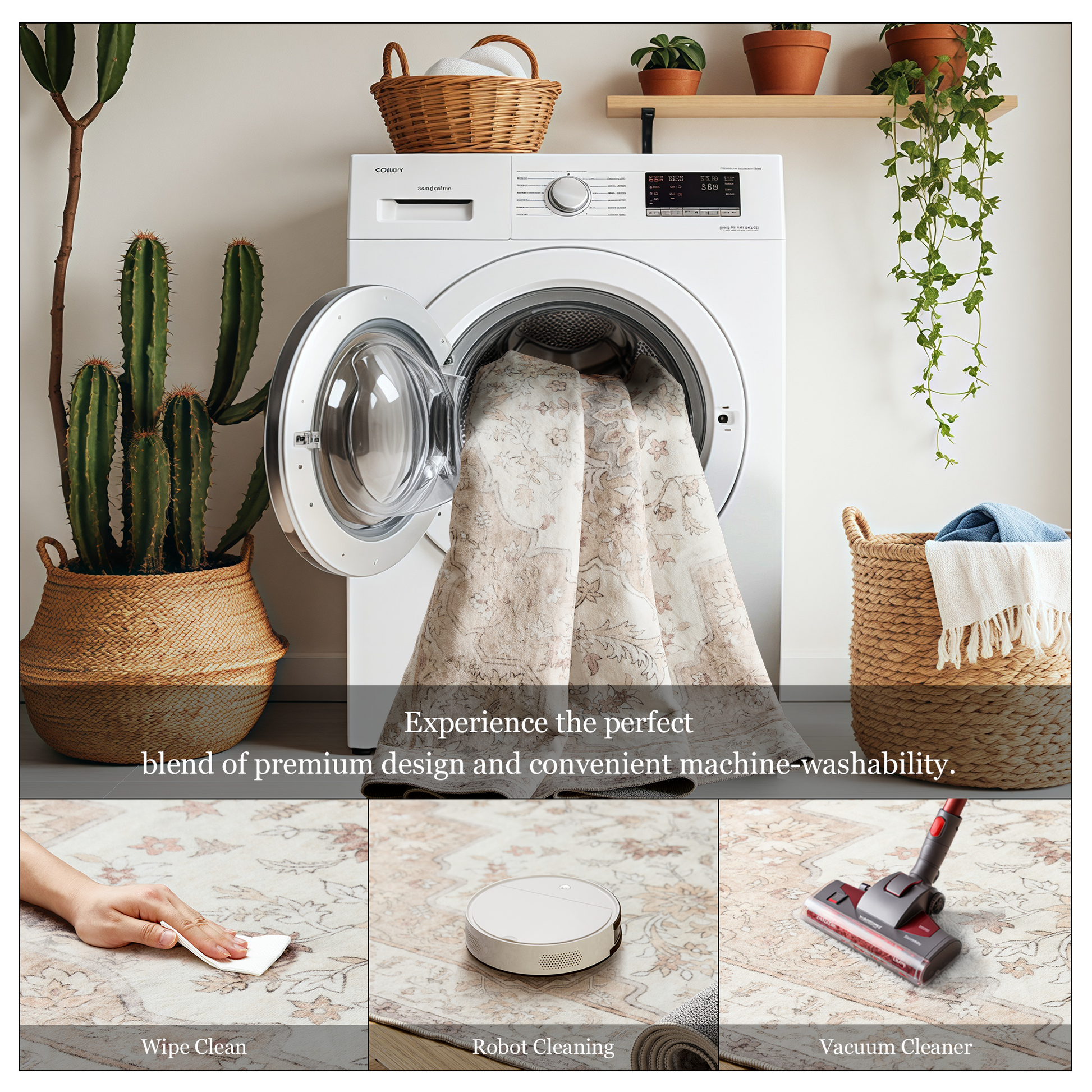 【Easy Care】With its machine-washable feature, this floral runner rug is incredibly easy to clean and maintain. Simply toss it in the washer, and it’ll look as good as new—every time. For daily care, a swift sweep or wipe suffices. Perfect for busy households, pet owners, or anyone who values convenience.
