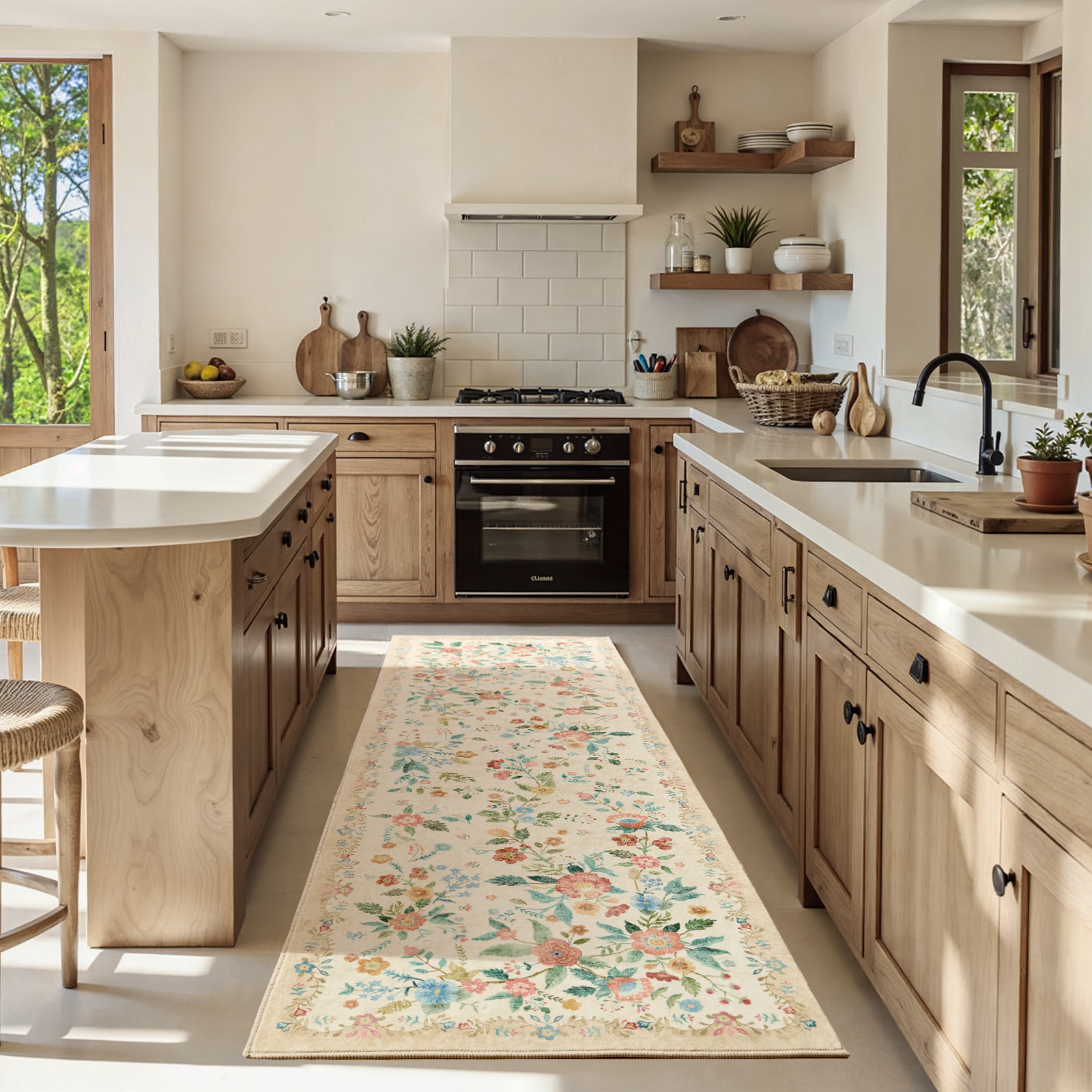 【Easy Care】With its machine-washable feature, this floral runner rug is incredibly easy to clean and maintain. Simply toss it in the washer, and it’ll look as good as new—every time. For daily care, a swift sweep or wipe suffices. Perfect for busy households, pet owners, or anyone who values convenience.