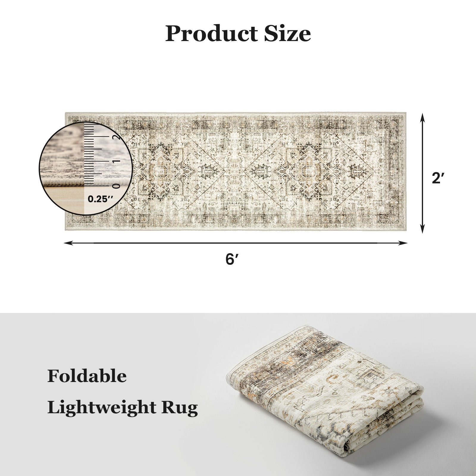 CHITOOMA 2'x6' Boho Runner Rug for Hallway, Machine Washable Stain Resistant Non-Shed Carpet, Runner Rug with Non-Slip Backing for Kitchen, Entryway, Bedroom, Laundry, Bathroom