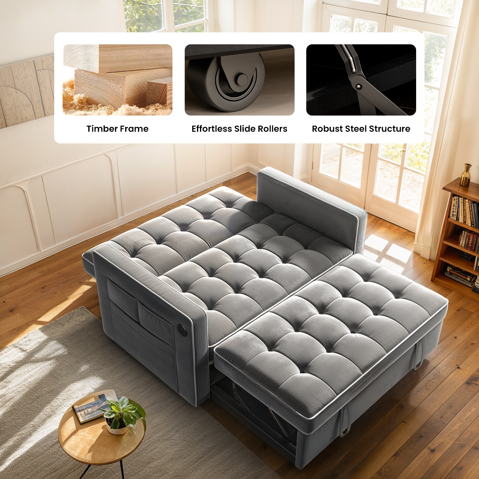 - Durable & Sturdy Construction: This sleeper sofa bed is built to support up to 600 lbs, combining style with strength for a reliable and long-lasting seating solution.