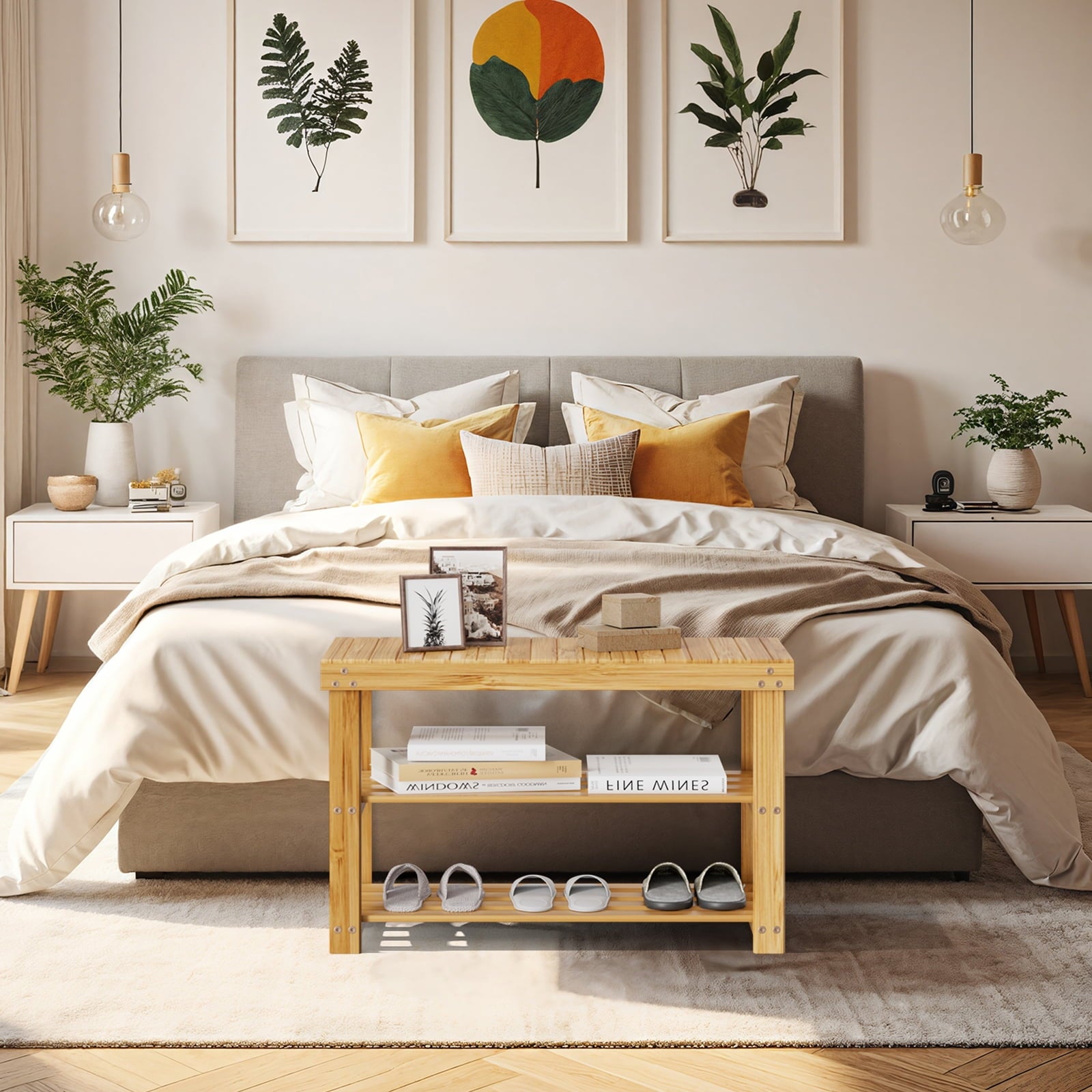 - Multi-functional Design. This bamboo shoe rack is not only ideal for shoe storage but also serves as a shoe cabinet, bathroom bench, or storage shelf. Whether it's in the entryway, living room, or bathroom, it brings both organization and functionality to your home.