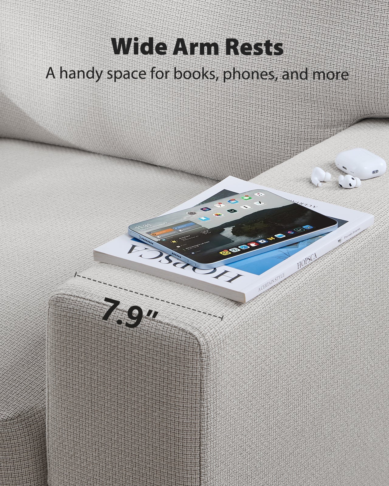 - 【Functional Armrests & Cushions: 】8" wide armrests provide space for remotes, phones, or mugs; extra-padded cushions enhance relaxation.