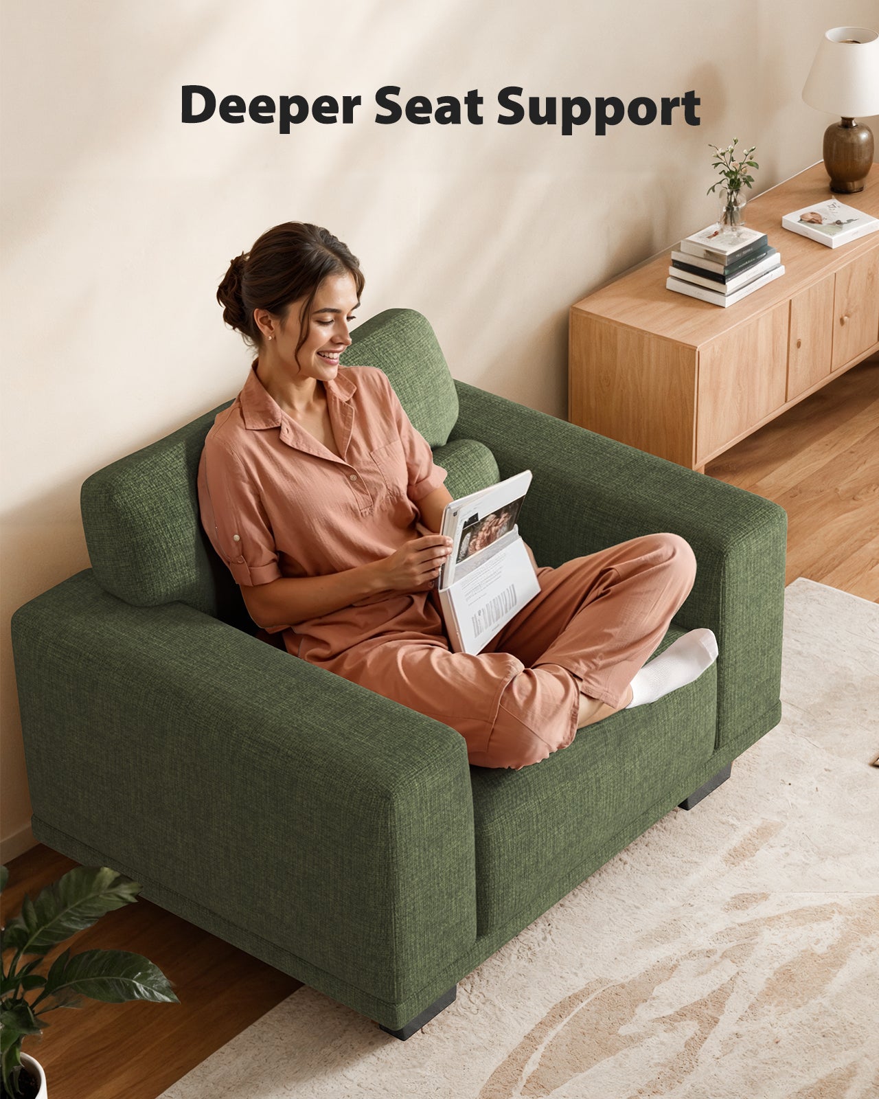 CHITOOMA 40" Oversized Accent Chair, Linen Upholstered Armchair with Washable Covers & Wide Armrests, Deep Seat Sofa Chair for Living Room, Bedroom, or Office, Green