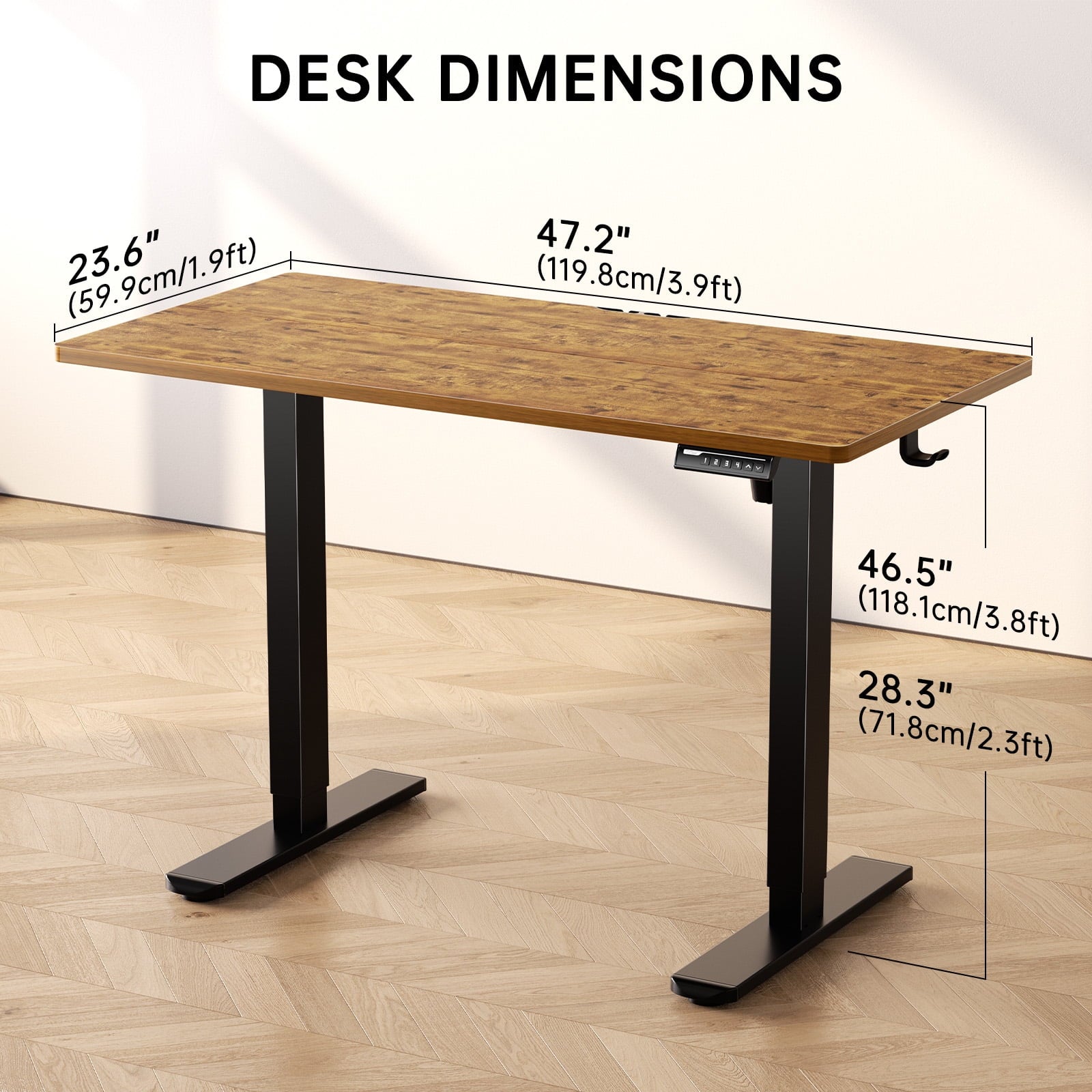 CHITOOMA 48" x 24" Electric Standing Desk with 4 Memory Preset Heights, Height Adjustable Sit Stand up Desk with Headphone Hook for Home Office, Rustic Brown
