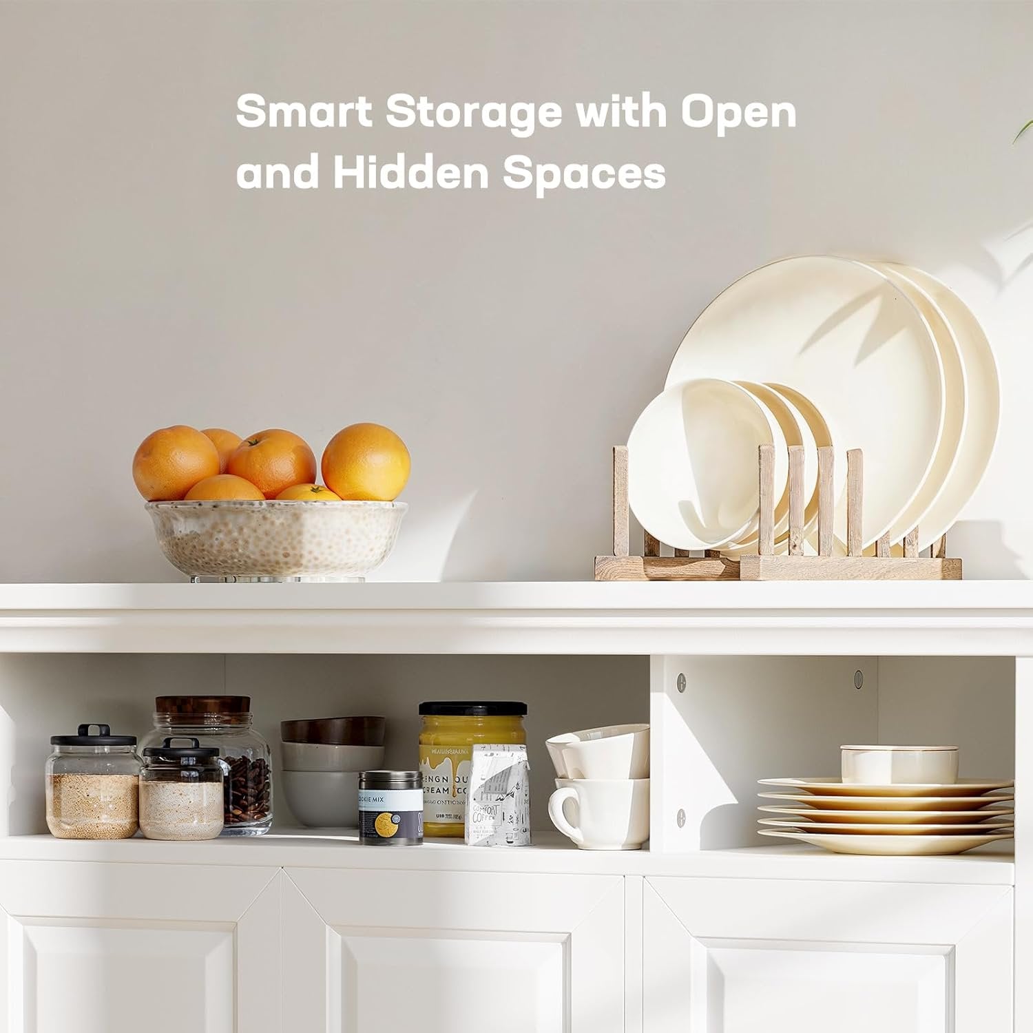 【Durable Materials 】Crafted from high-density MDF and reinforced particle board with a waterproof, scratch-resistant finish, this buffet cabinet is built for daily use. Its sturdy structure supports heavy appliances like microwaves or coffee makers with confidence.