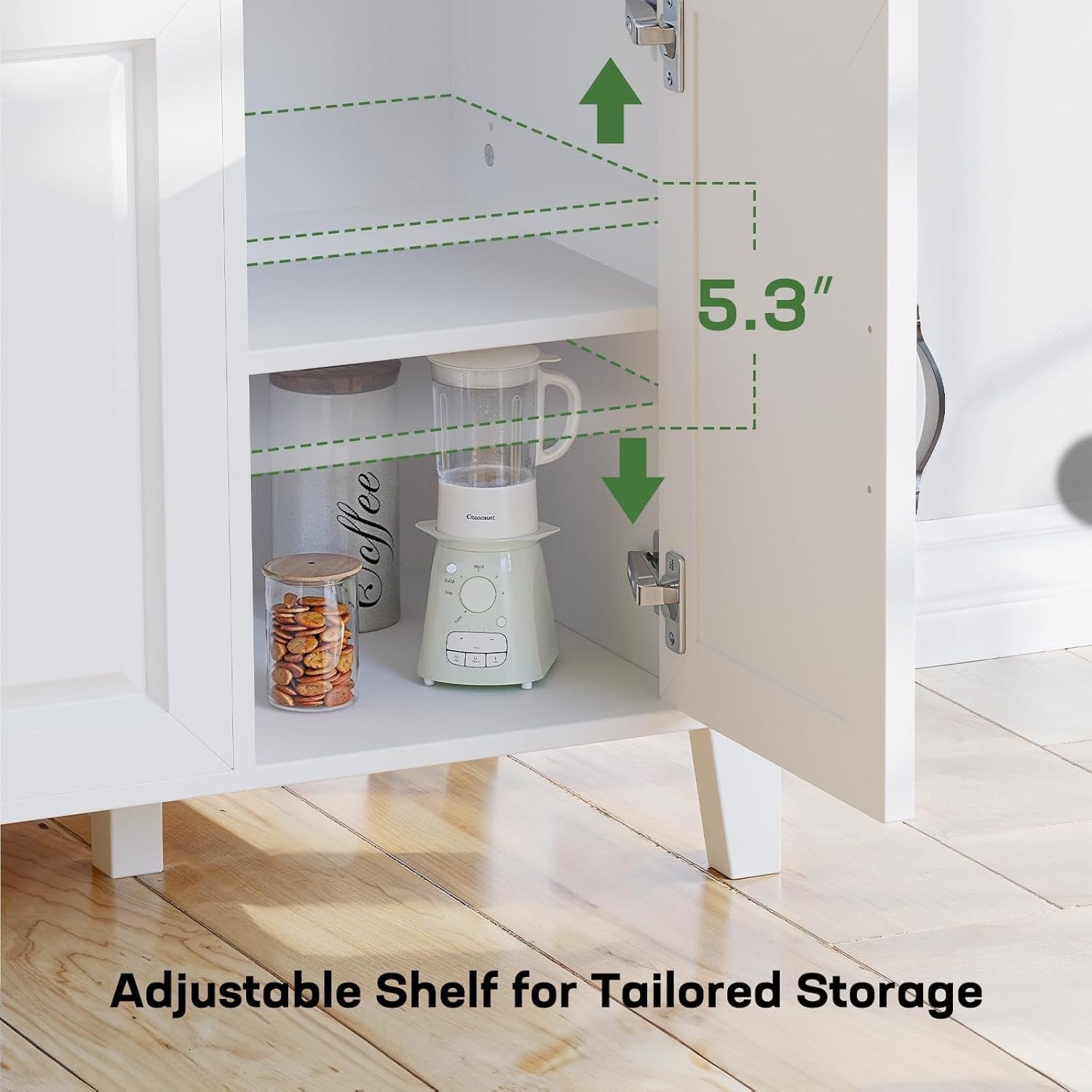CHITOOMA 55" Sideboard Buffet Cabinet with Adjustable Shelves & 4 Doors, Modern Farmhouse Coffee Bar Cabinet for Kitchen Dinning Room, White