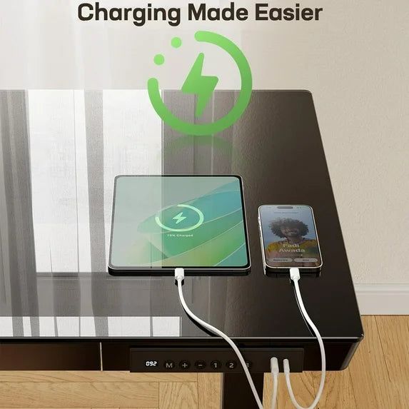 - Stay connected with built-in USB-A and Type-C charging ports located on the front panel of the desk. Charge your phone, tablet, laptop, or other smart devices without cluttering your desk, keeping everything within arm’s reach.