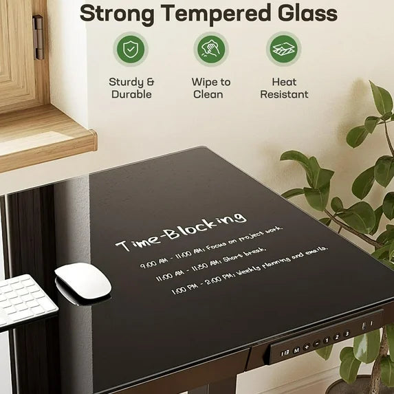 - Setting up your adjustable standing desk is quick and easy with the one-piece glass desktop. The simple assembly instructions ensure that you can get your new computer desk up and running in no time.