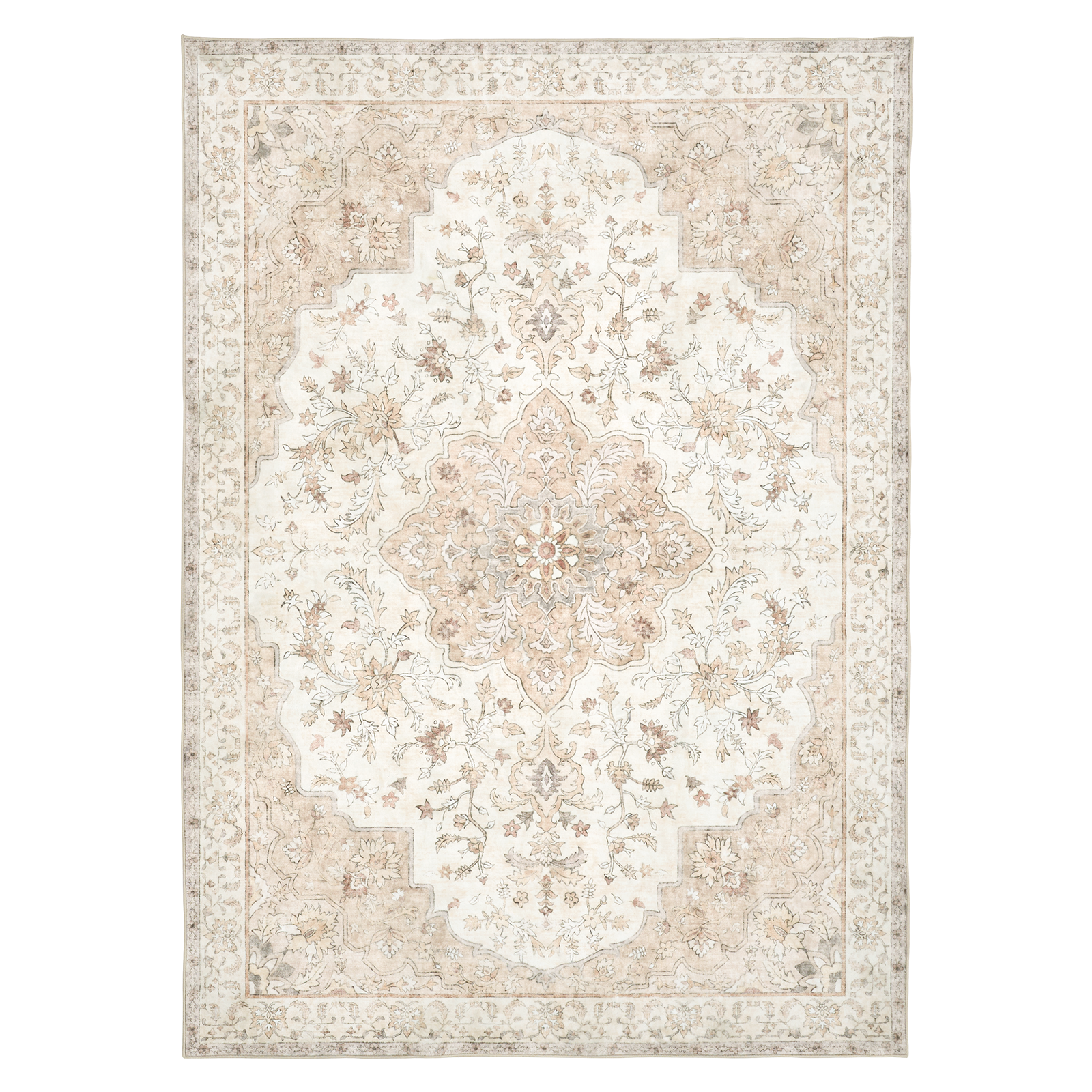 CHITOOMA 5'x7' Boho Area Rugs for Living Room, Machine Washable Stain Resistant Non-Shed Carpet, Floral Area Rug with Non-Slip Backing for Bedroom, Dining Room, Dorm, Office