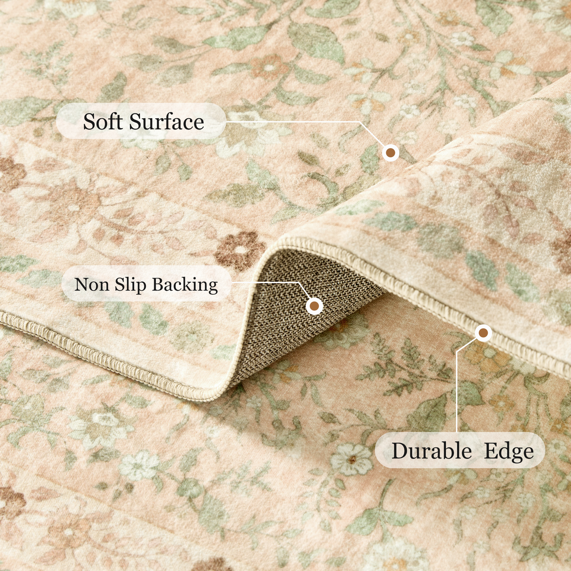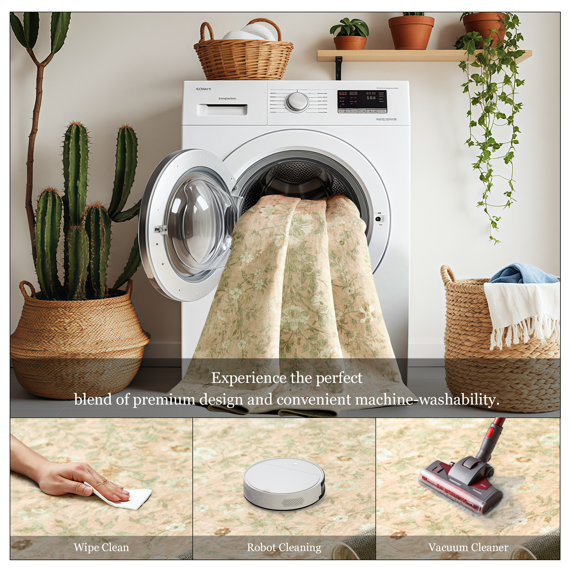 Easy Care】With its machine-washable feature, this floral area rug is incredibly easy to clean and maintain. Simply toss it in the washer, and it’ll look as good as new—every time. For daily care, a swift sweep or wipe suffices. Perfect for busy households, pet owners, or anyone who values convenience.