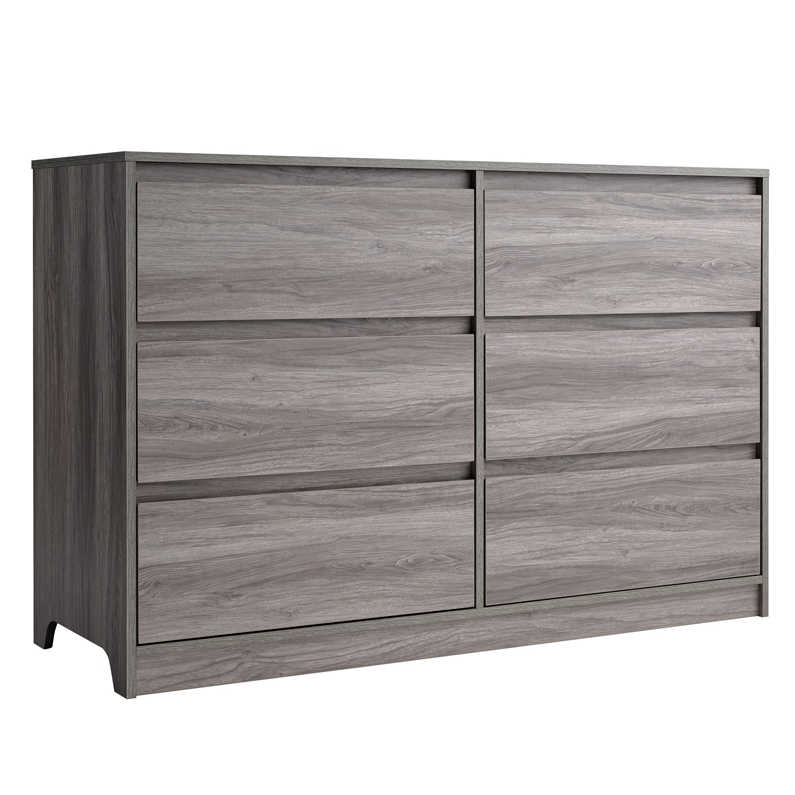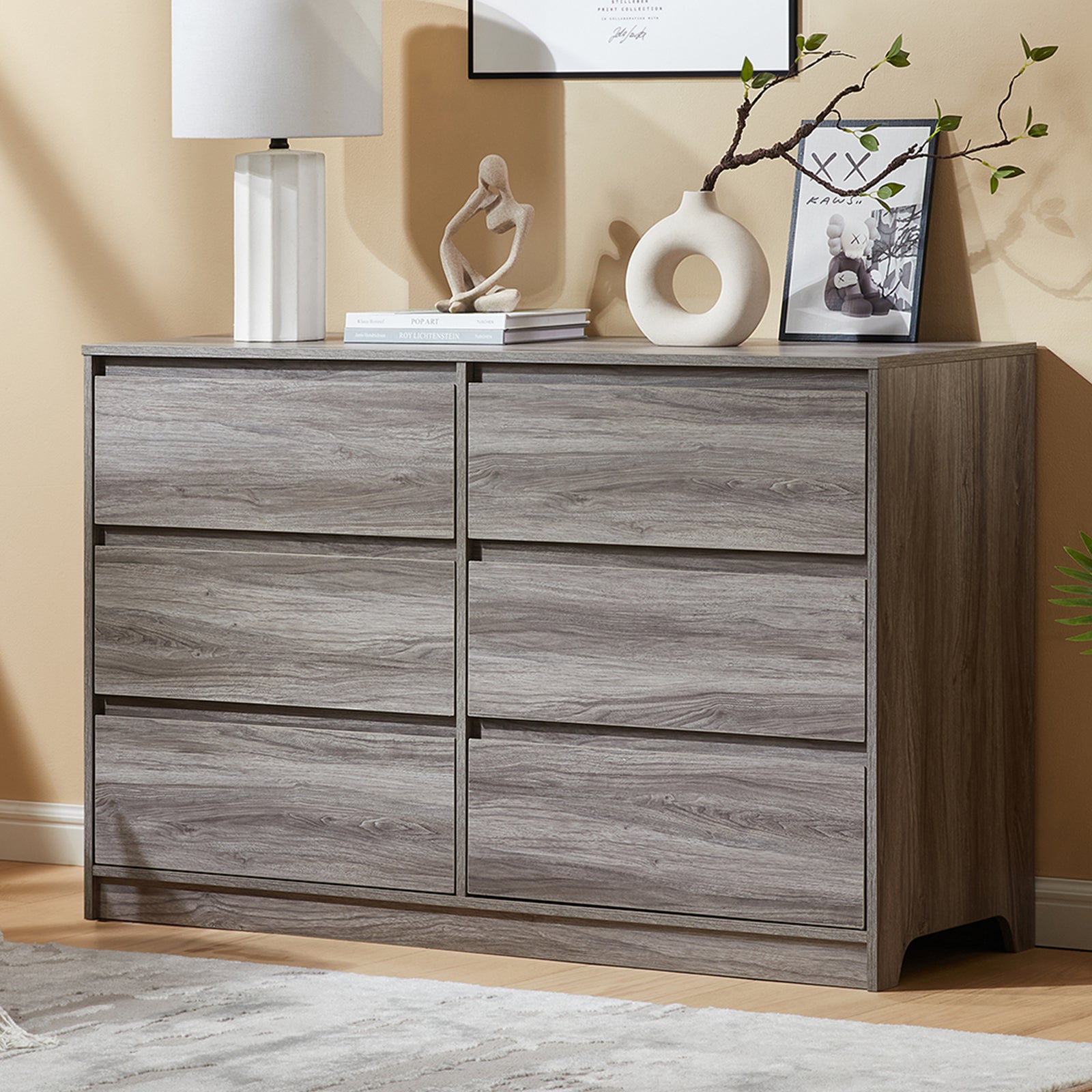 Upgrade your home with this modern 6-drawer Gray dresser, designed to deliver both style and smart storage. With six oversized drawers (12.9" x 22.4" x 6.3"), this spacious chest offers ample room for clothing, accessories, and everyday essentials. The wide, flat top surface is perfect for showcasing lamps, plants, or your favorite home décor.