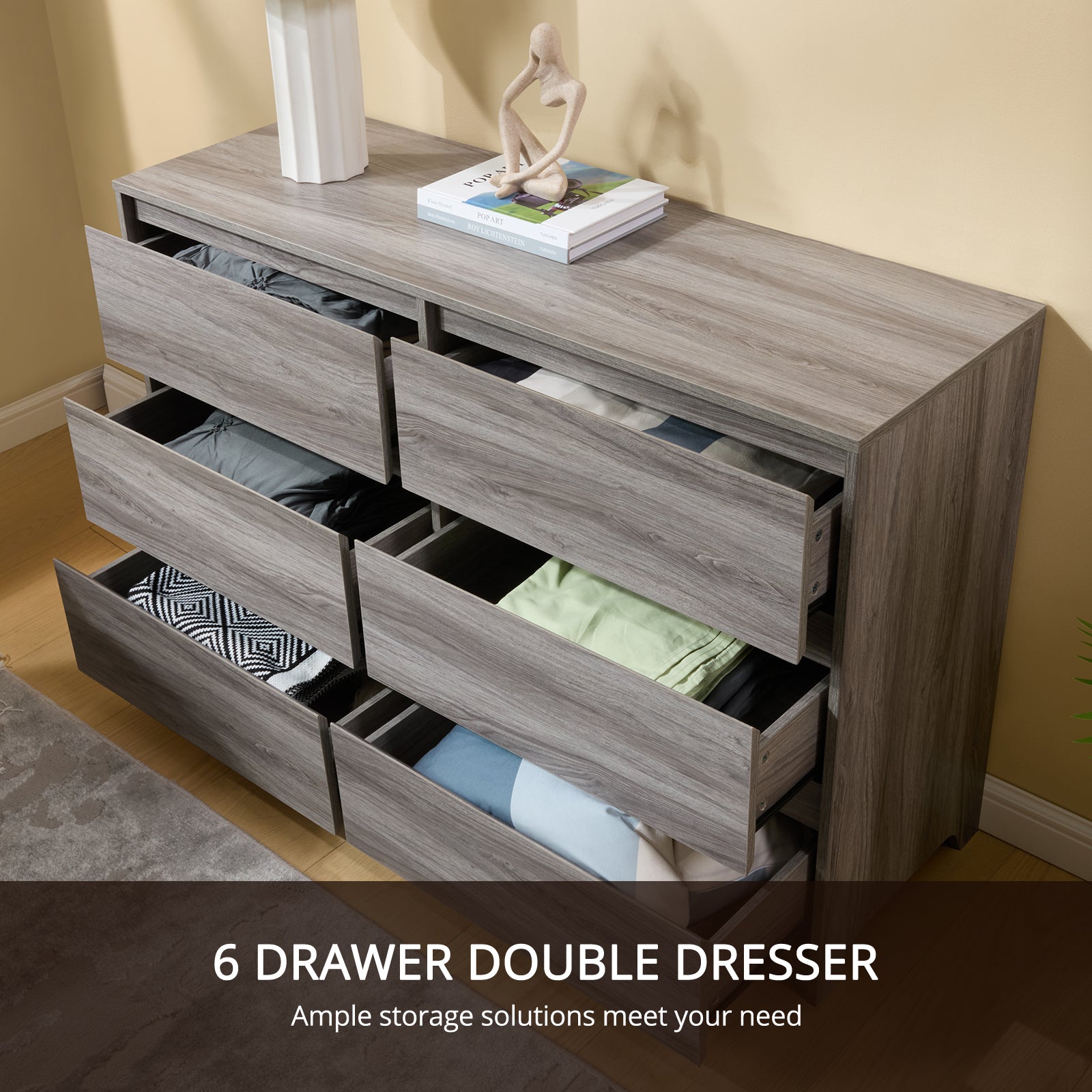 CHITOOMA 6 Drawer Double Dresser, 47.2" Adult Wood Storage Side Cabinet Chest of Drawer for Bedroom Living Room Hallway, Gray