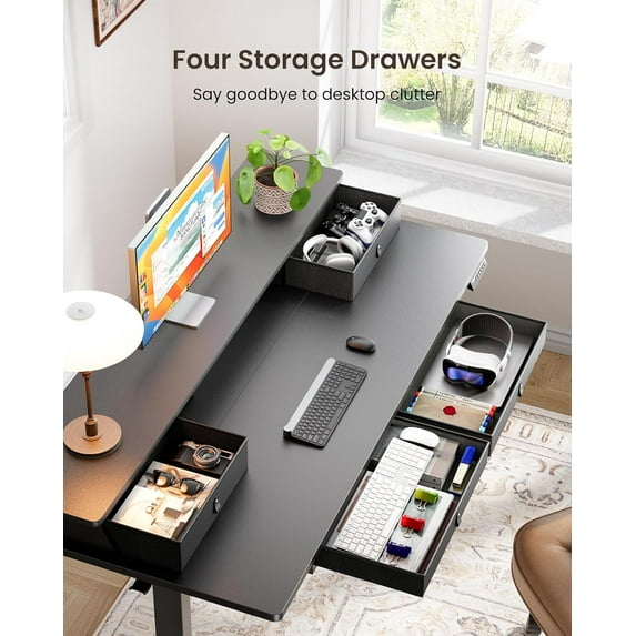 CHITOOMA 63″ x 30″ Standing Desk with Drawers, Electric Height Adjustable Sit Stand Desk with Storage Shelf, 4 Memory Preset Computer Desk with Cable Management Tray for Home Office, Black