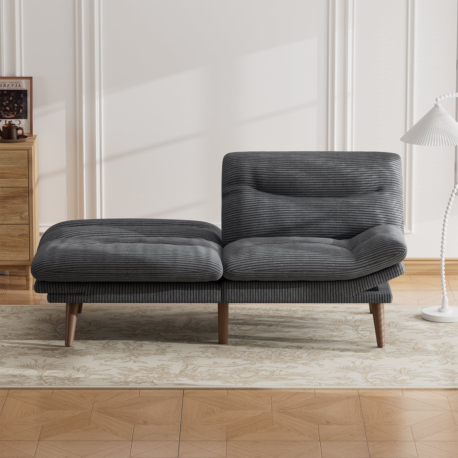 CHITOOMA 66'' Futon Sofa Bed with Adjustable Backrest & Armrests, Grey Corduroy Convertible Futon Couch, Comfy Loveseat for Small Spaces Apartment, Office