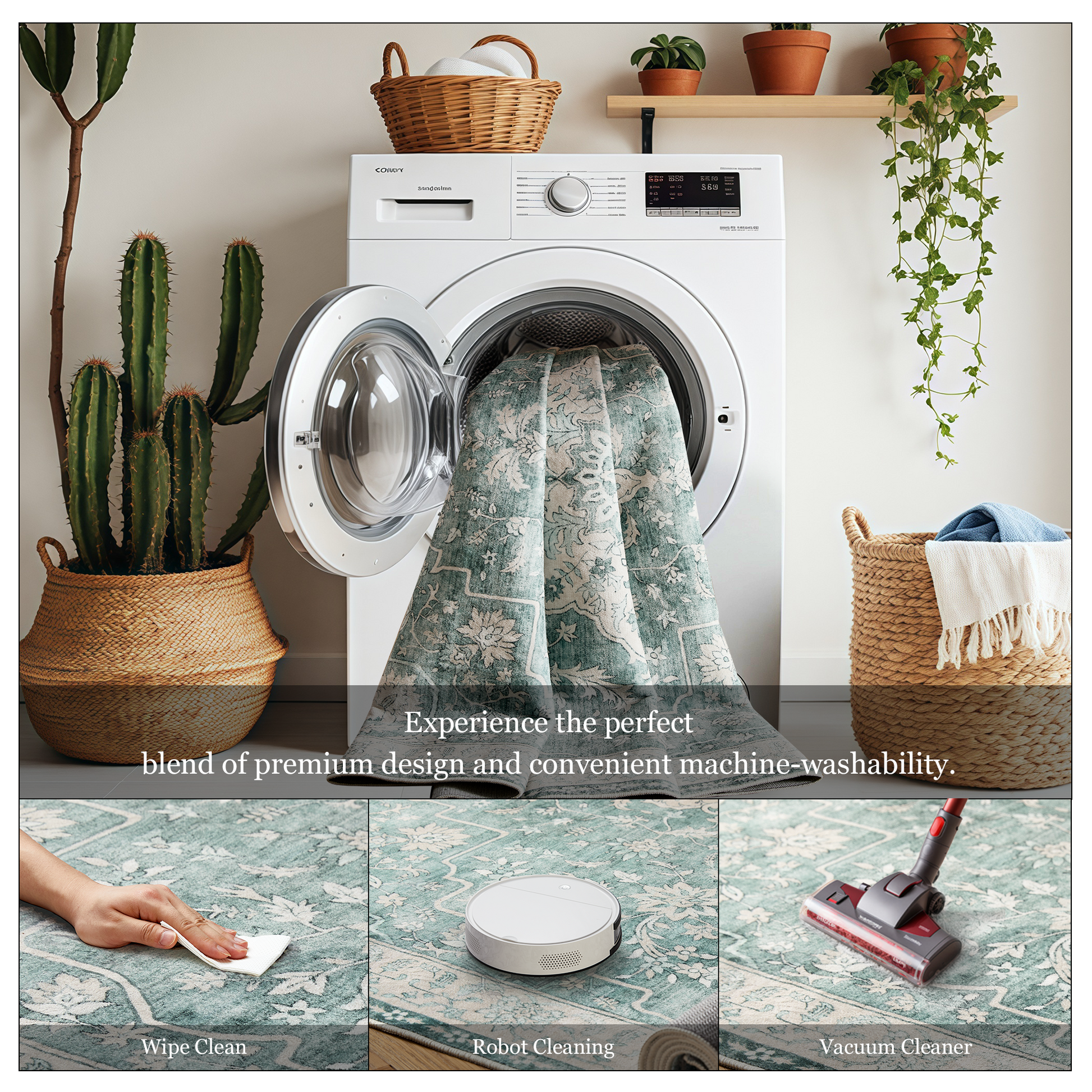 【Easy Care】With its machine-washable feature, this floral area rug is incredibly easy to clean and maintain. Simply toss it in the washer, and it’ll look as good as new—every time. For daily care, a swift sweep or wipe suffices. Perfect for busy households, pet owners, or anyone who values convenience.