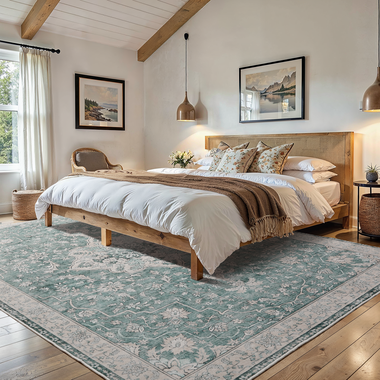 【Boho Vintage Design】Featuring a vintage floral medallion design in a versatile neutral tones, this geometric boho rug effortlessly complements any decor style. From bohemian chic to contemporary minimalism, it adds a touch of elegance and warmth to your home.