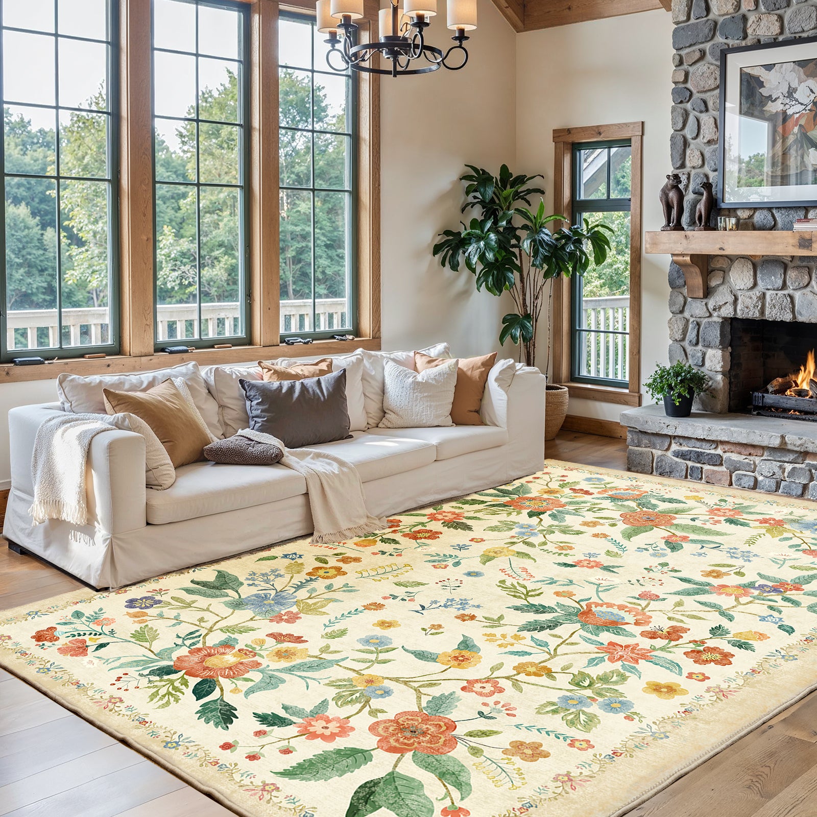 【Easy Care】With its machine-washable feature, this floral area rug is incredibly easy to clean and maintain. Simply toss it in the washer, and it’ll look as good as new—every time. For daily care, a swift sweep or wipe suffices. Perfect for busy households, pet owners, or anyone who values convenience.