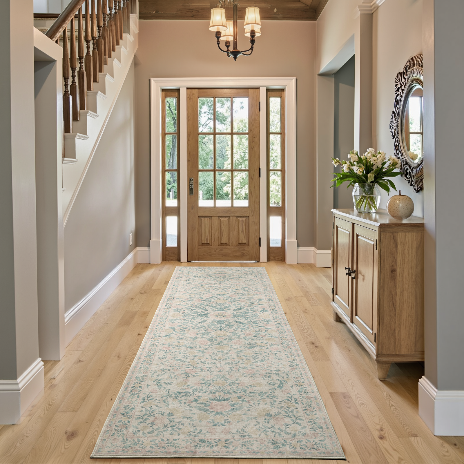 【Easy Care】With its machine-washable feature, this floral area rug is incredibly easy to clean and maintain. Simply toss it in the washer, and it’ll look as good as new—every time. For daily care, a swift sweep or wipe suffices. Perfect for busy households, pet owners, or anyone who values convenience.