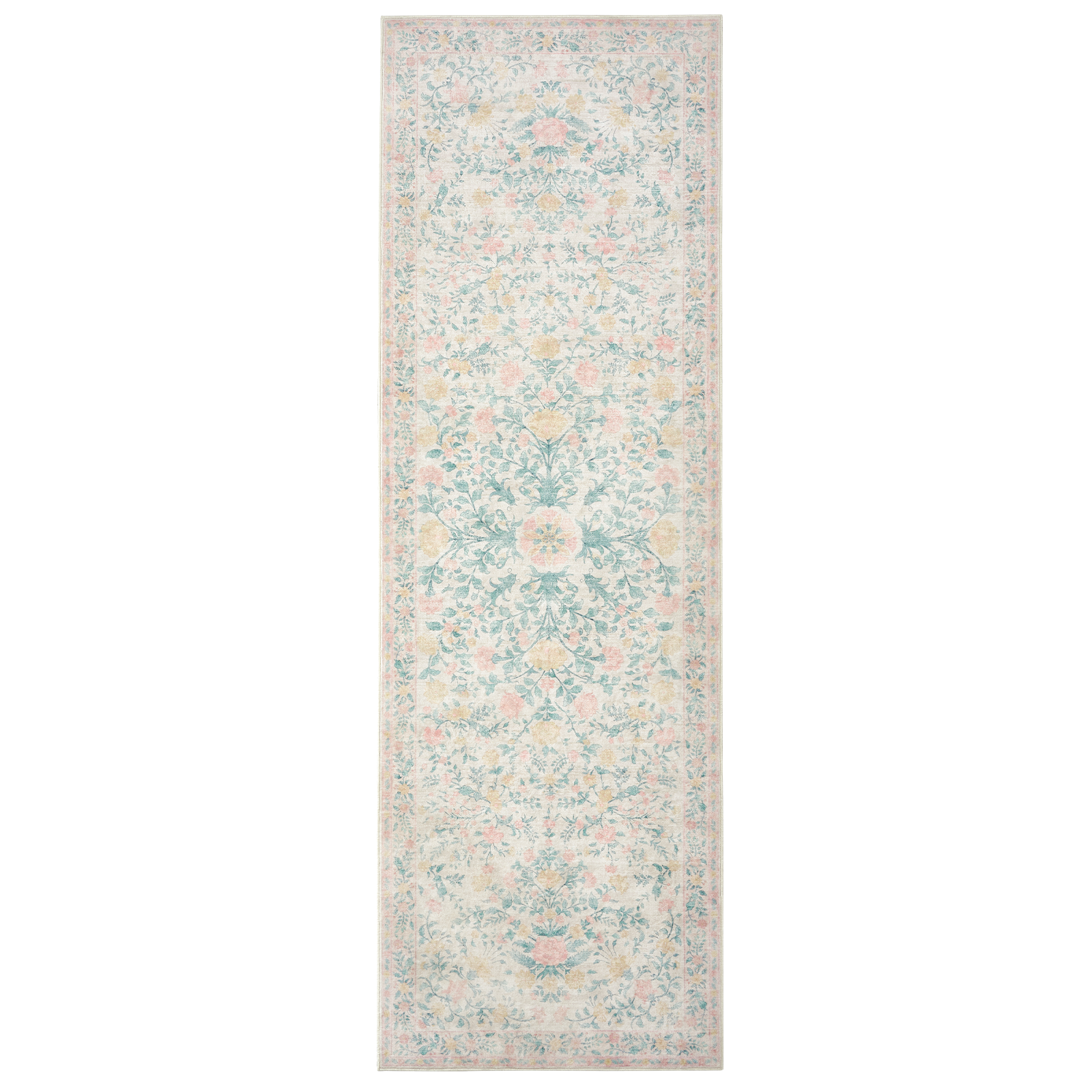 CHITOOMA 2.6'x8' Boho Runner Rug for Hallway, Machine Washable Stain Resistant Non-Shed Carpet, Floral Runner Rug with Non-Slip Backing for Kitchen, Entryway, Bedroom, Laundry, Bathroom