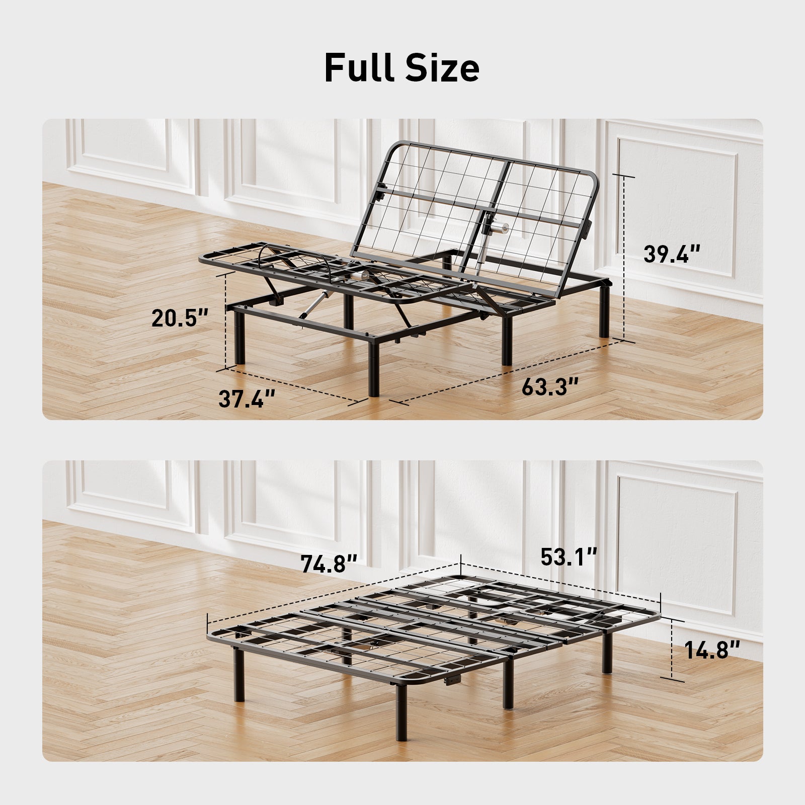 CHITOOMA Adjustable Bed Base with Remote Control and 4 USB Ports, Electric Bed Frame with 6 Position Presets and Head/Foot Lift, Full Size