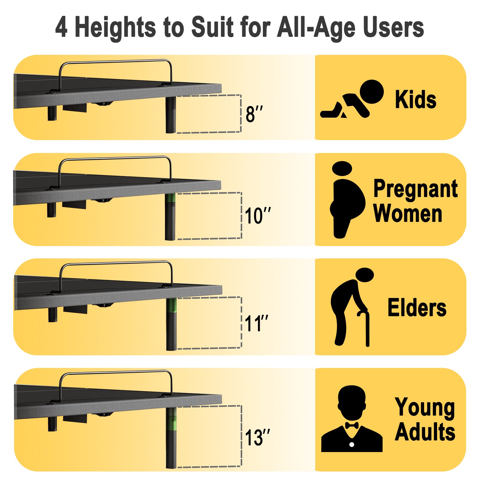 - Adjustable Leg Heights: Mix and match 2", 3", and 8" legs to achieve a total height of 8", 10", 11", or 13", ideal for different user needs and extra storage space.