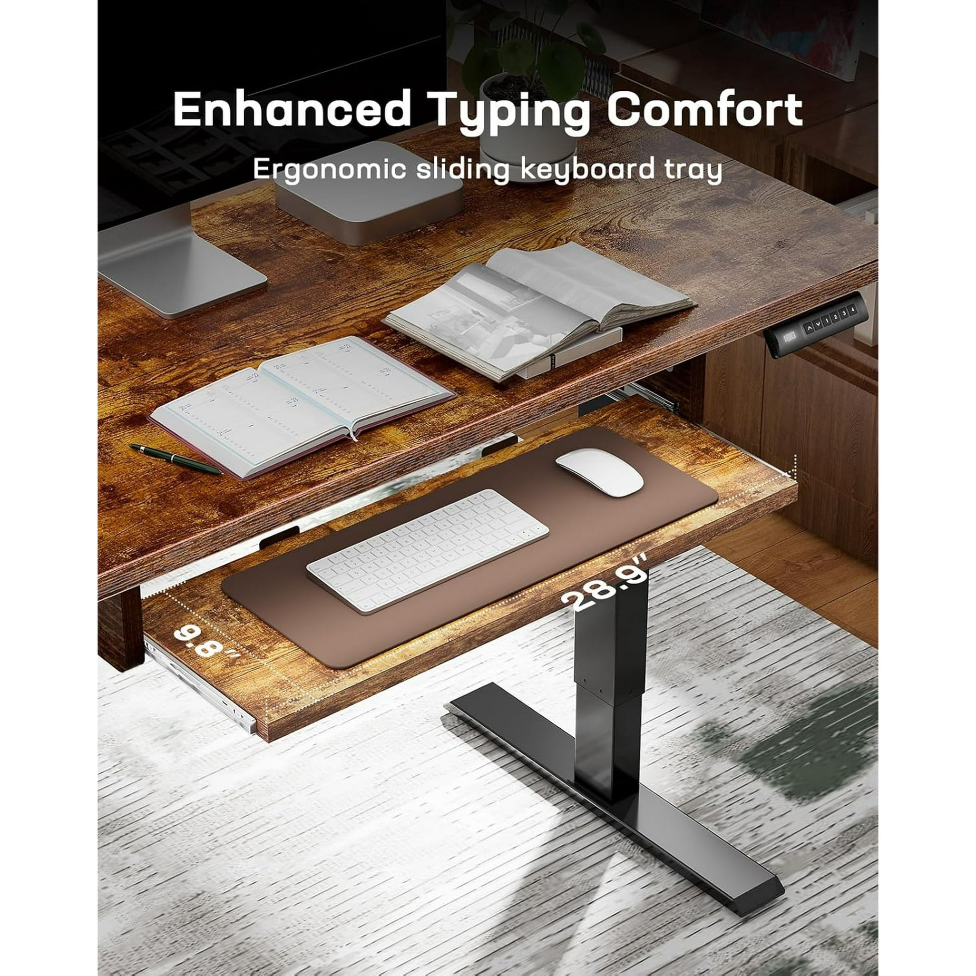 CHITOOMA Electric Standing Desk with Keyboard Tray, 48" x 24" Adjustable Height Sit Stand Up Desk, Home Office Gaming Desk Computer Workstation, Vintage Brown
