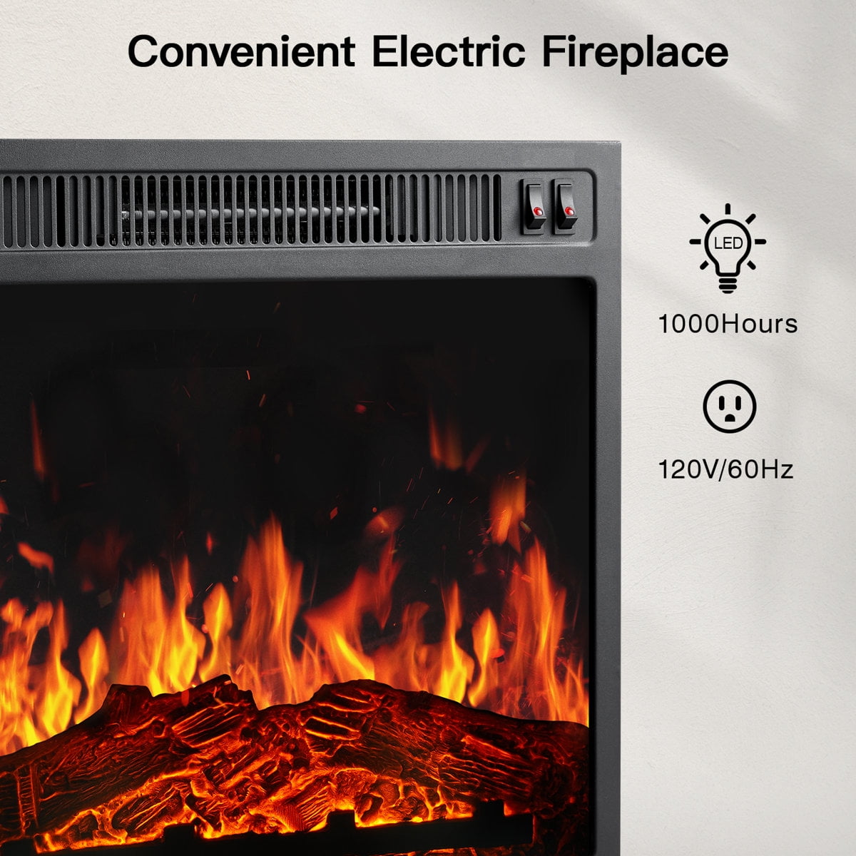 👉TV Stand with 1500W Fireplace: The 23 inches fireplace offers a full view of the stunning 3D electric fire effects with glass display, with 4-speed flame, 65 to 95°F heating adjustments, experience an ultimate comfort in cozy temperature, supporting warm for 600 SQ. FT. The flame and heat are separately controlled. Enjoy low noise and warm atmosphere with family. Sleep timer up to 8 hours.