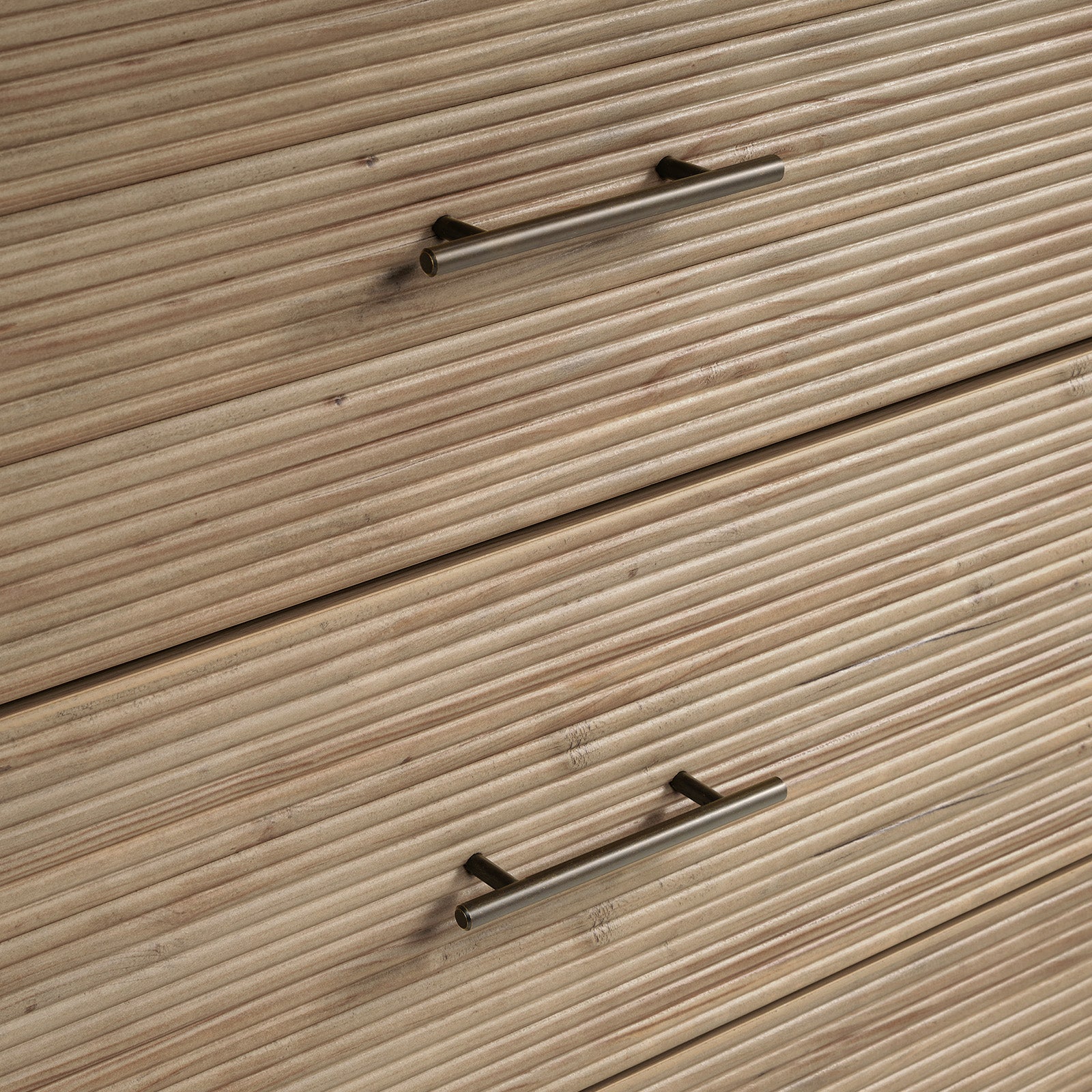 - The dresser features elegantly textured striped drawer fronts that elevate its visual appeal. This subtle design detail adds depth and sophistication, bringing a modern yet natural charm to any living space while maintaining a clean and minimalist aesthetic.